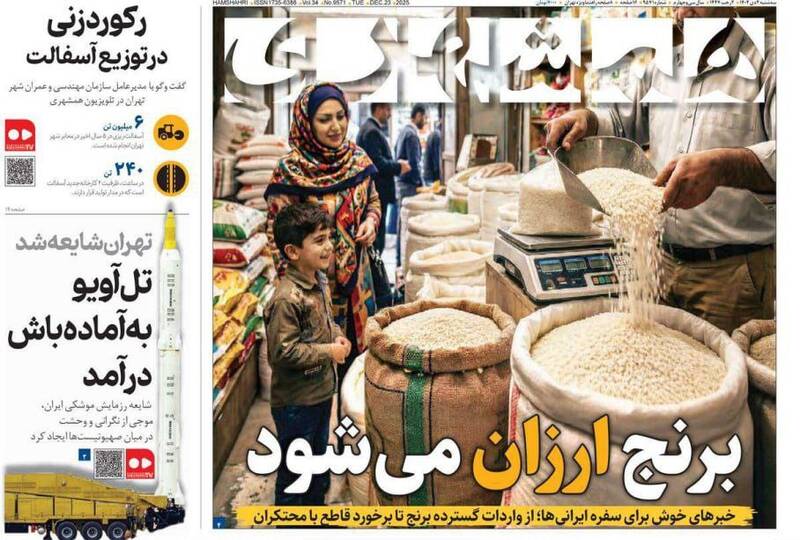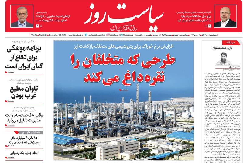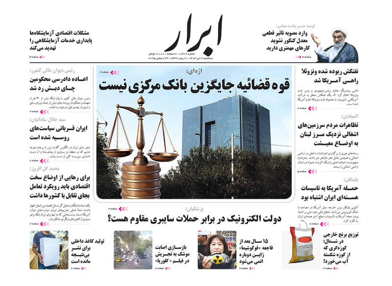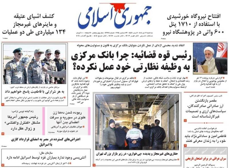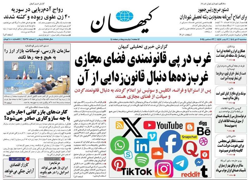 غرب در پی قانونمندی فضای مجازی غربزدهها دنیال قانونزدایی از آن، طلبکار شدند، عملیات سوخته، دیپلماسی منطقهای در تعطیلات، برنج ارزان میشود و...از جمله تیترهای روزنامههای سهشنبه ۲ دی هستند.