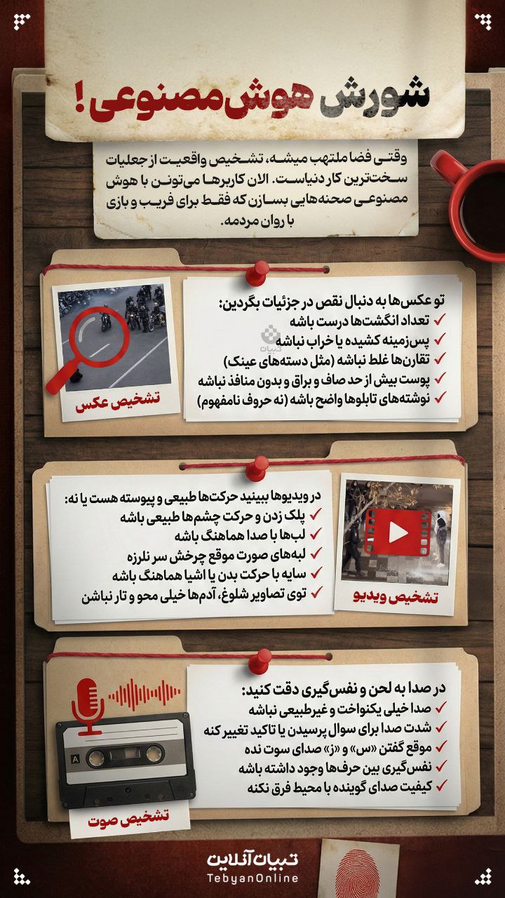 وقتی فضا ملتهب میشه، تشخیص واقعیت از جعلیات سختترین کار دنیاست.الان دشمن میتونه با هوش مصنوعی صحنههایی بسازه که فقط برای فریب و بازی با روان مردمه