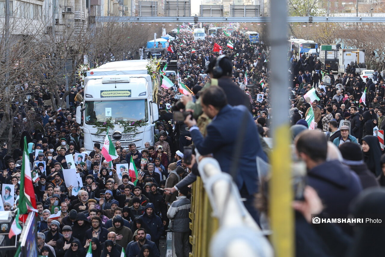 4-تشییع پیکرهای شهدا که در روز چهارشنبه در تهران رخ داد، نمادی از مظلومیت مردم ایران و نیروهای حافظ امنیتِ جانبرکف و اخلاقمداری بود که بدست تروریستهای جانی به شهادت رسیدند. مردم پیکرهایی را تشییع کردند که برای امنیت و آرامش مردم خونین شدهاند؛ حافظان امنیت مردم بر روی زمین افتادند تا پرچم ایران همچنان برافراشته بماند و آرامش و آسایش ملت سلب نشود.