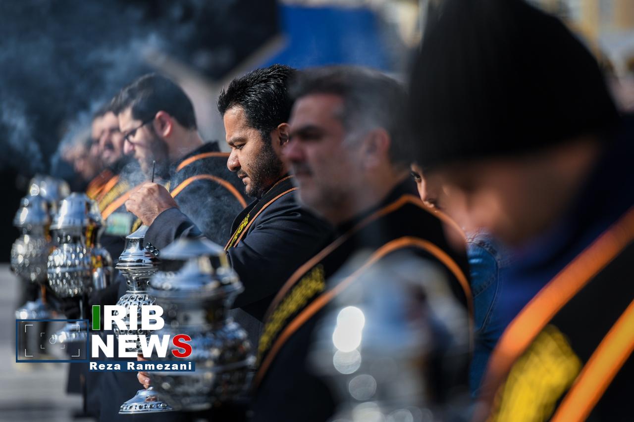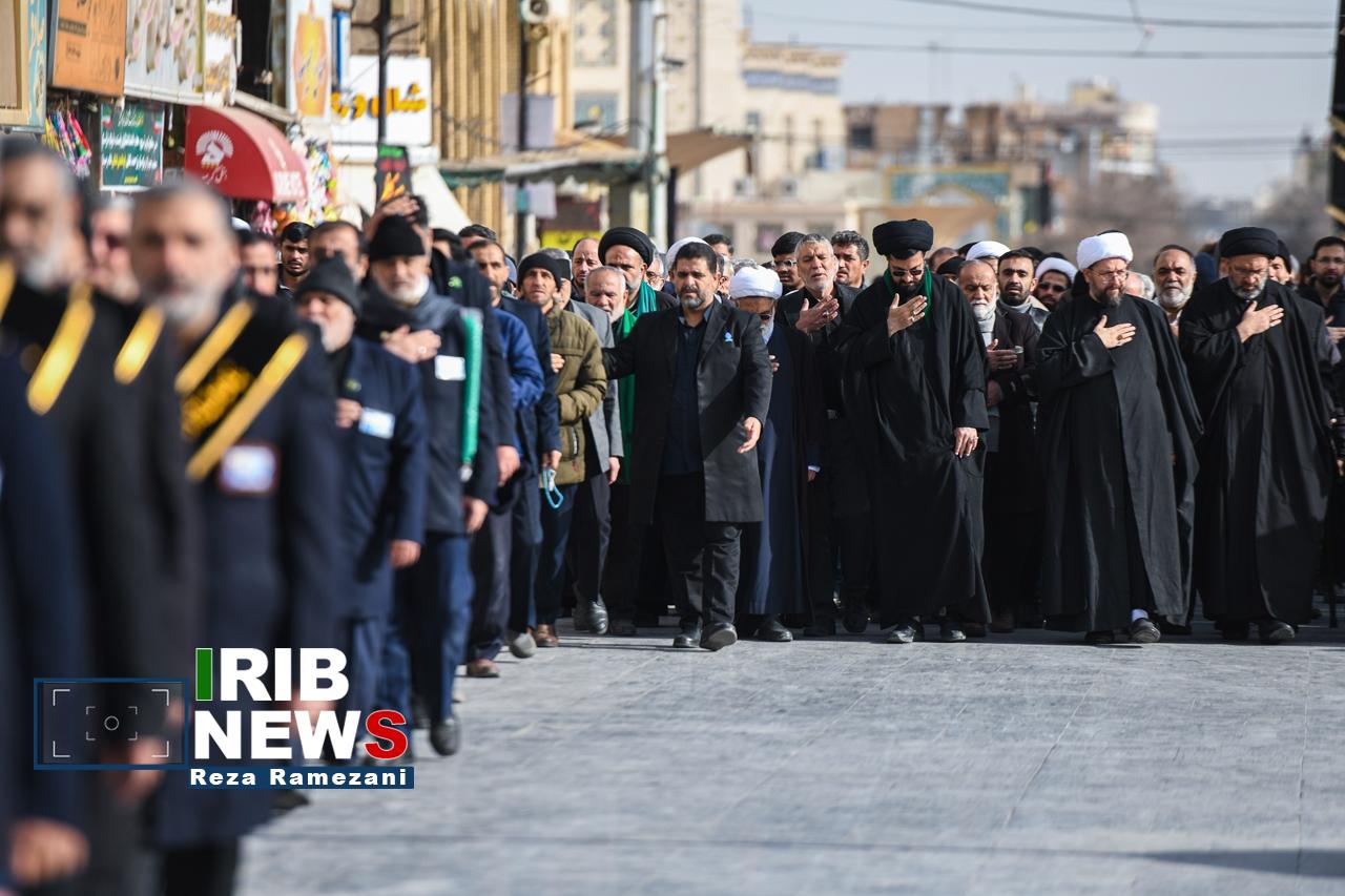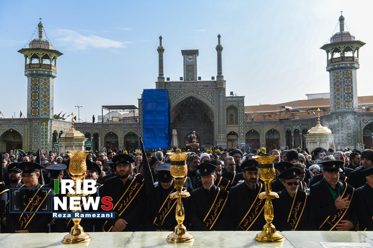خادمان حرم مطهر حضرت فاطمه معصومه سلام الله علیها با برپایی دسته عزاداری در سالروز شهادت امام موسی کاظم علیه السلام از مسجد امام حسن عسکری علیه السلام تا حرم مطهر بانوی کرامت با نوای حسن شالبافان به عزاداری و عرض ارادت پرداختند.