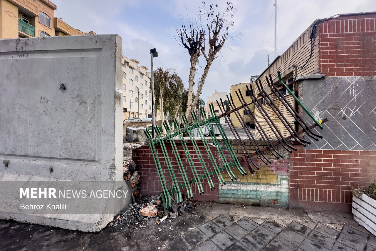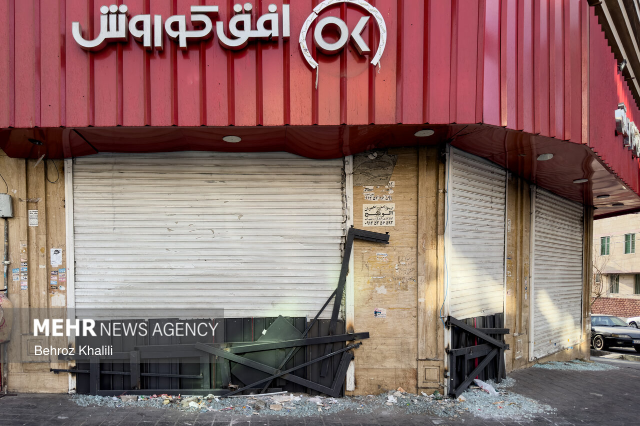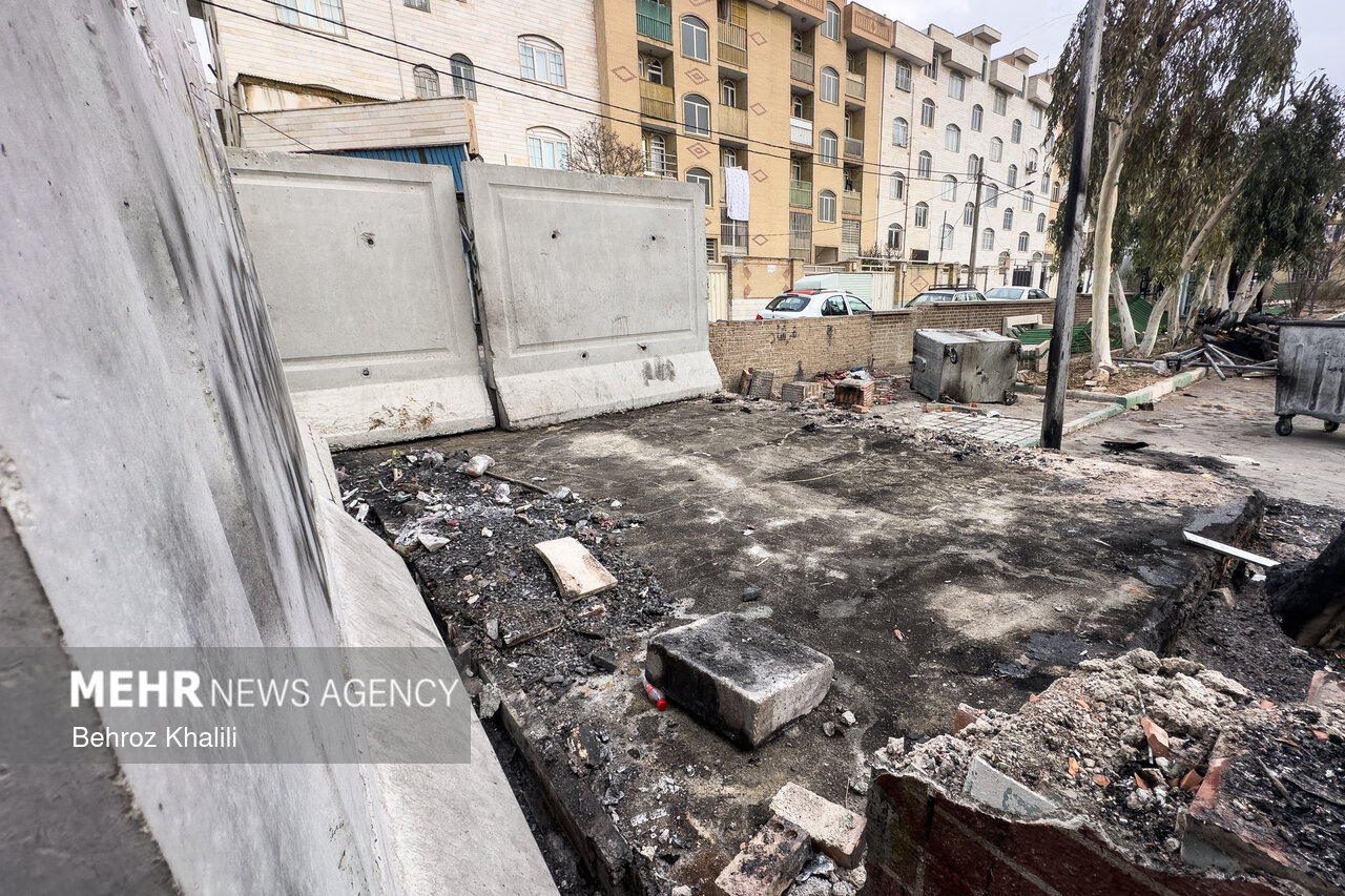 در طی اقدامات تروریستی پنجشنبه شب گذشته، مساجد، بانکها، فروشگاهها، کلانتری، بازار ترهبار، ساختمان شهرداری و چراغها و علائم راهنماییورانندگی، در محله مشیریه تهران دچار خسارت شدند.