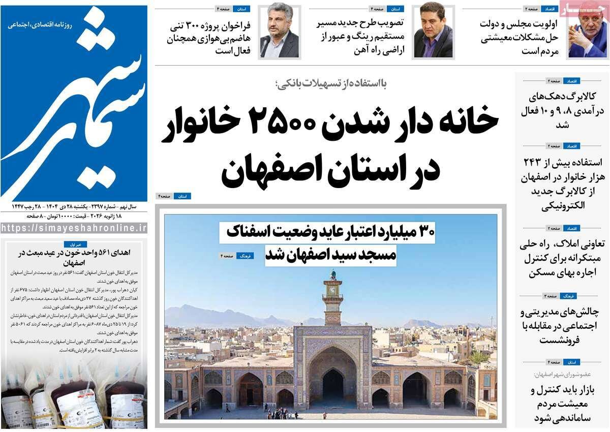 صفحه نخست روزنامه‌های اصفهان یکشنبه ۲۸ دی