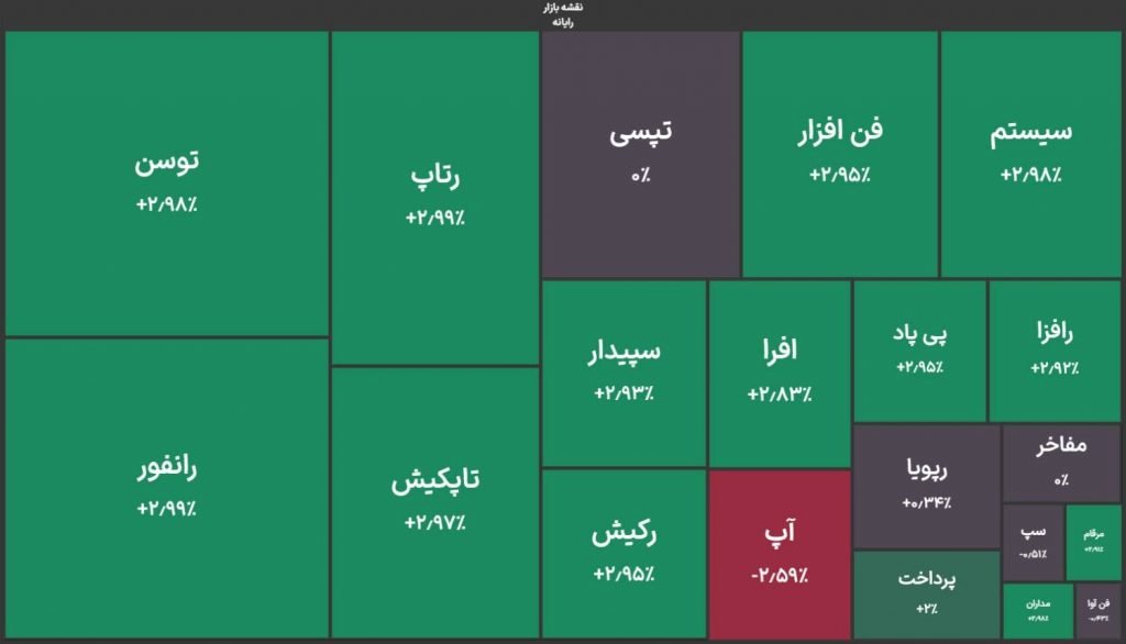 اکثر نمادهای گروه رایانه هم مثبت معامله شدند و مثلاً همکارانسیستم، سپیدار و توسن هم صف خرید بودند.