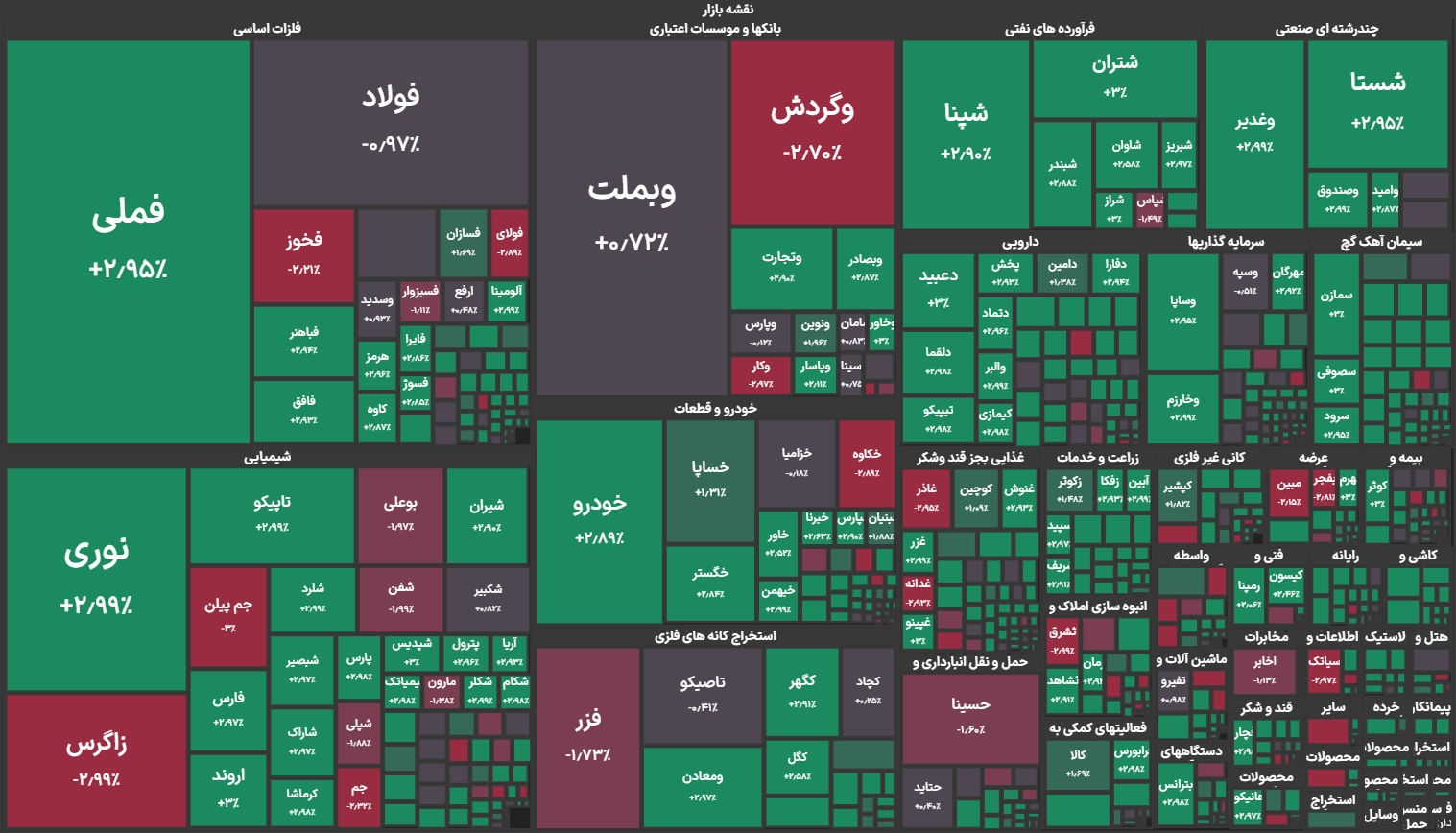 طی معاملات امروز 577 نماد مثبت و 147 نماد منفی بودند. یعنی نزدیک به چهار پنجم نمادهای بورسی رشد قیمت را تجربه کردند.