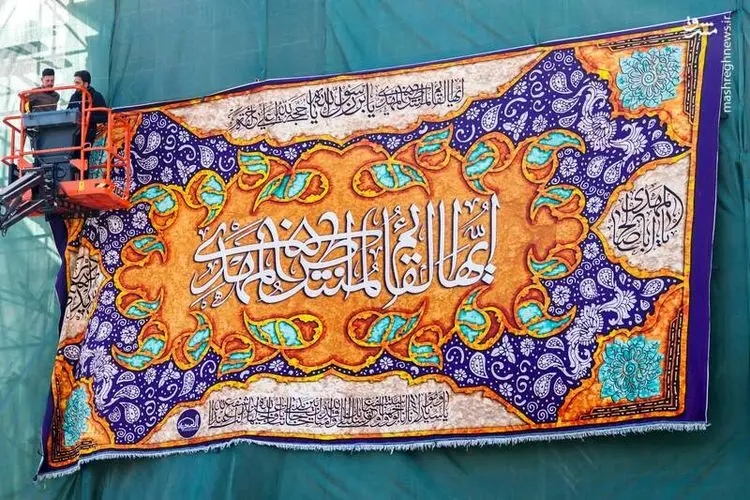 تصاویر نصب کتیبه‌های اعیاد شعبانیه در حرمین سامرا