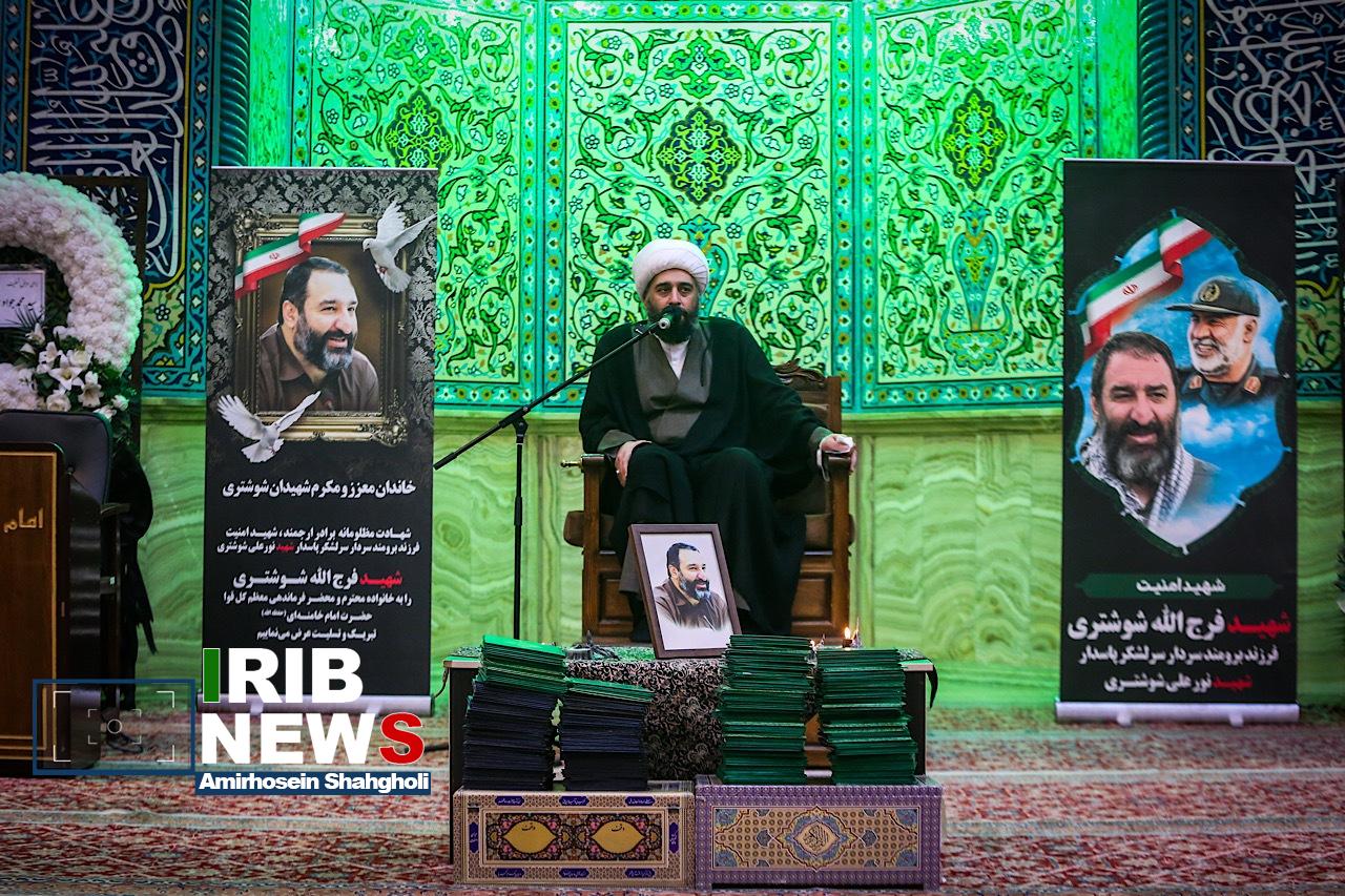 مراسم بزرگداشت شهید فرج الله شوشتری فرزند شهید سردار نورعلی شوشتری با حضور مردم تهران، خانواده شهید و مقامات لشکری و کشوری از جمله محمد باقر قالیباف، رئیس مجلس شورای اسلامی. سردار اسماعیل قانی فرمانده نیروی قدس سپاه پاسداران انقلاب اسلامی، در مسجد امام صادق علیه اسلام تهران در میدان فلسطین برگزار شد.