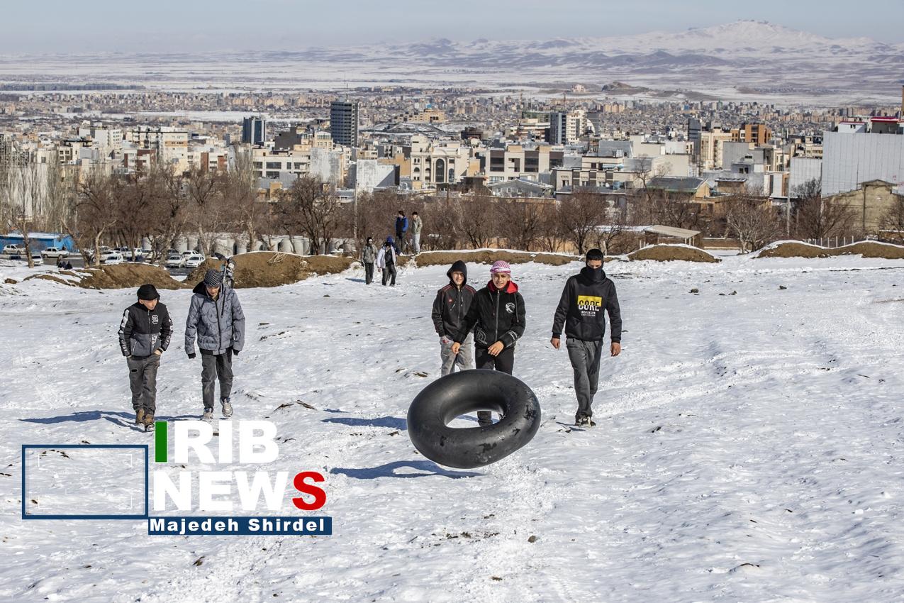 در پی فعالیت سامانه بارشی در استان همدان، بارش برف پس از گذشت حدود یک ماه از فصل زمستان در همدان موجب حضور مردم در دامنه کوه الوند برای تفریحات مختلفی مانند تیوپ بازی و برف بازی شد