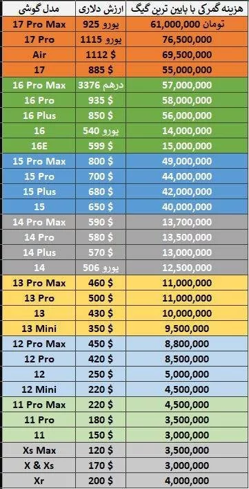 لازم به ذکر است، هزینه رجیستری آیفون ۱۷ پرومکس از در عرض حدود یک ماه، (از ۱۵ آذر تا ۱۴ دی) حدود دو برابر شده و از ۴۰ میلیون به ۸۰ میلیون تومان رسیده بود.