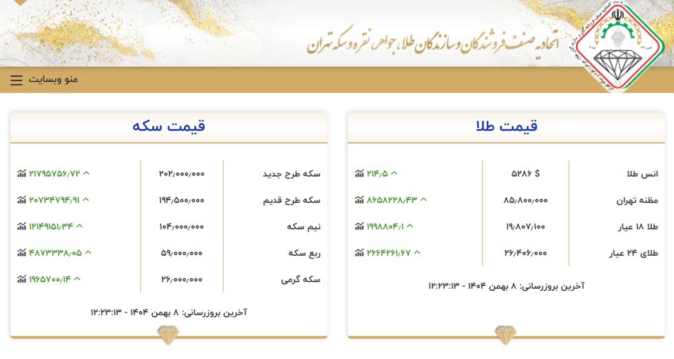 به گزارش دیجیاتو، بر اساس آمار لحظهای منتشر شده در سایت اتحادیه طلا و جواهر، بازار طلا امروز تحت تأثیر مستقیم صعود قیمت انس طلای جهانی، از همان دقایق ابتدایی با شوک قیمتی آغاز به کار کرد.