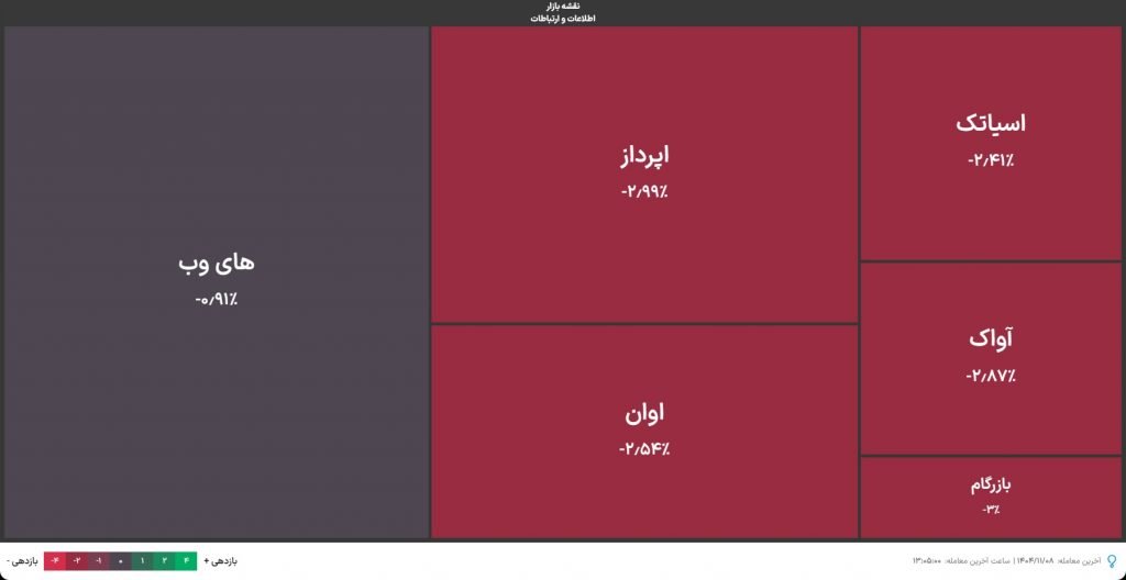 در گروه اطلاعات و ارتباطات بیشتر نمادها قرمزپوش بودند.