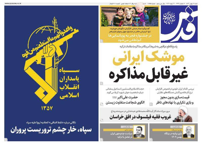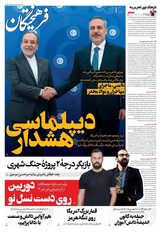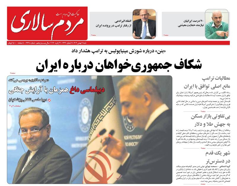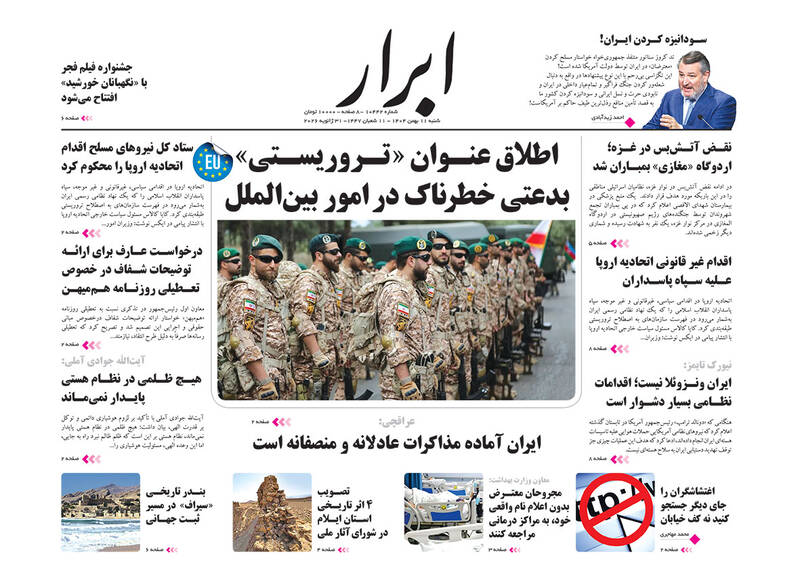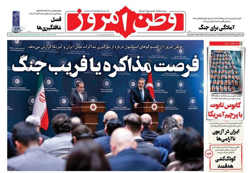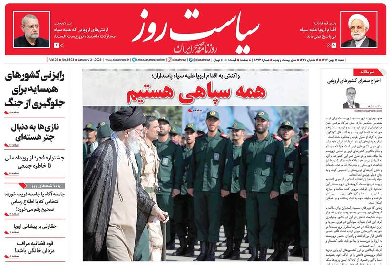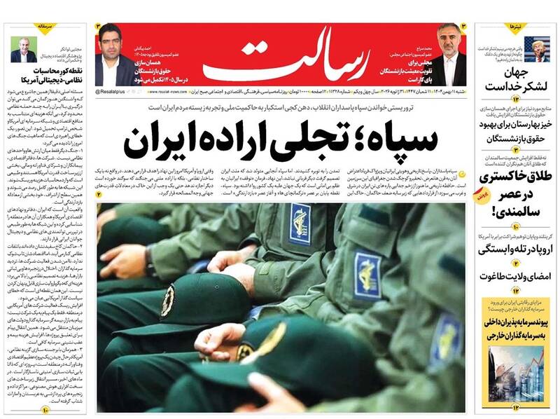 سفرای اتحادیه اروپا را اخراج کنید، سپاه خار چشم آمریکا و اسرائیل است، فرصت مذاکره یا فریب جنگ، تروریست شمایید، اروپای ضعیف نانجیب و...از جمله تیترهای روزنامههای شنبه ۱۱ بهمن ۱۴۰۴ هستند.