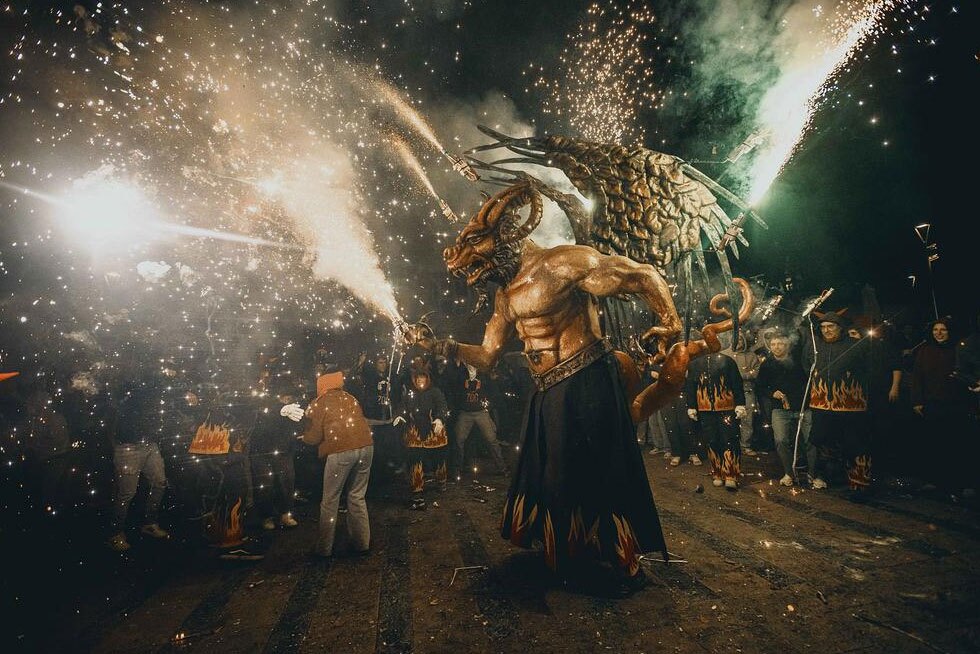 آتش‌بازی آیینی در محله گراسیای شهر بارسلونا اسپانیا/ زوما