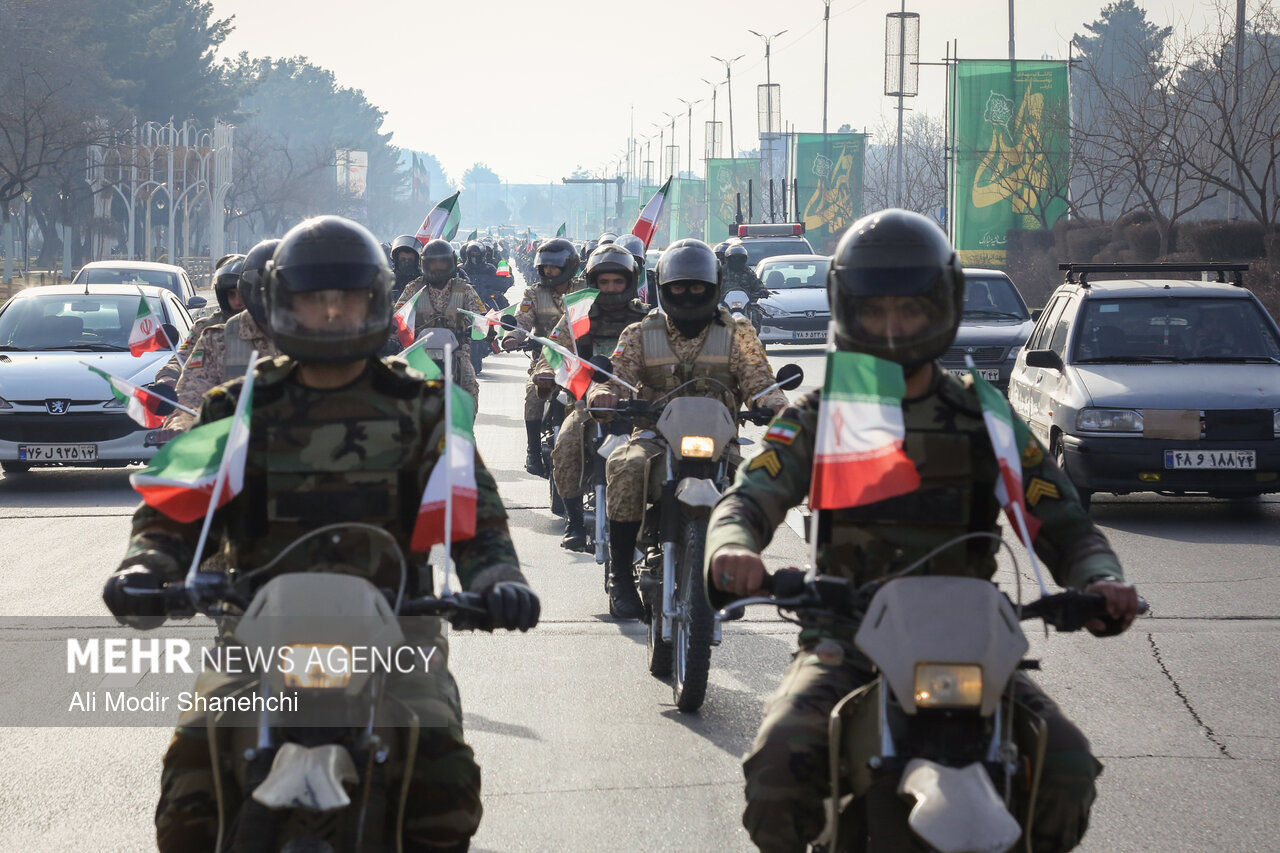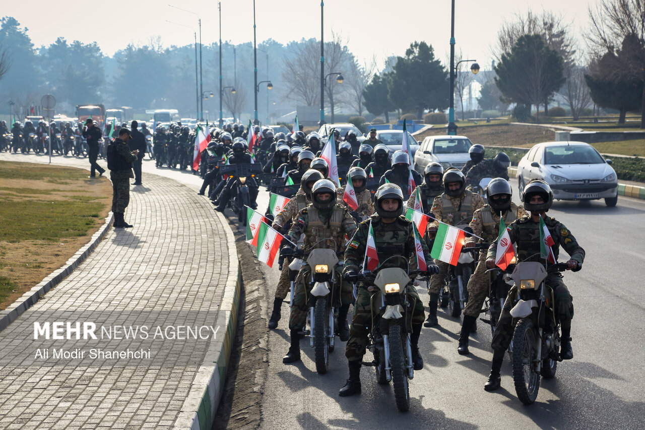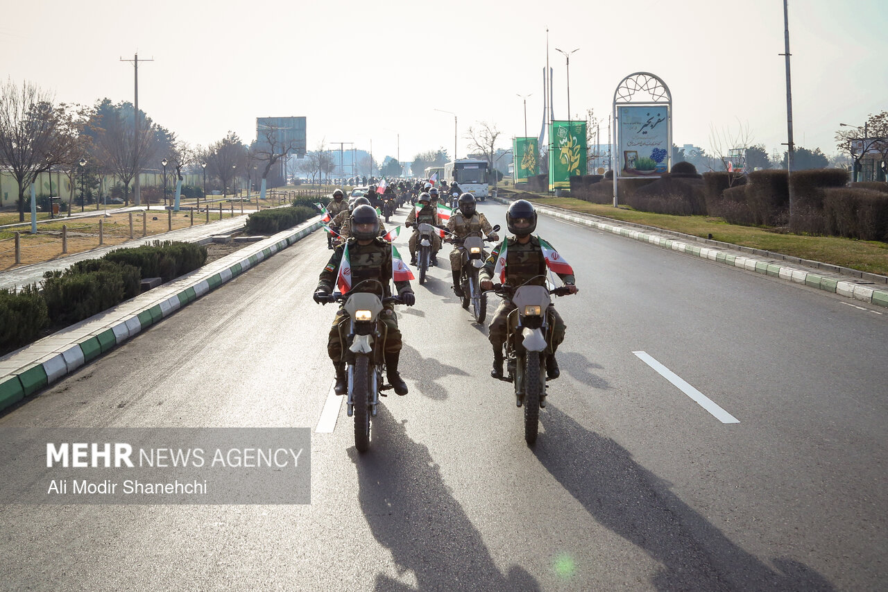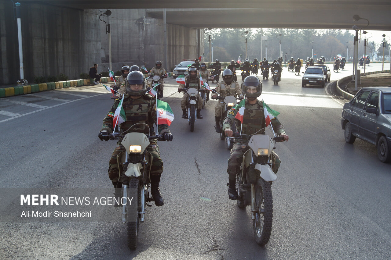صبح امروز همزمان با آغاز دهه فجر، مراسم رژه اقتدار موتوری نیروهای مسلح خراسان رضوی از بلوار فرودگاه به سمت میدان شهدا در مشهد برگزار شد.