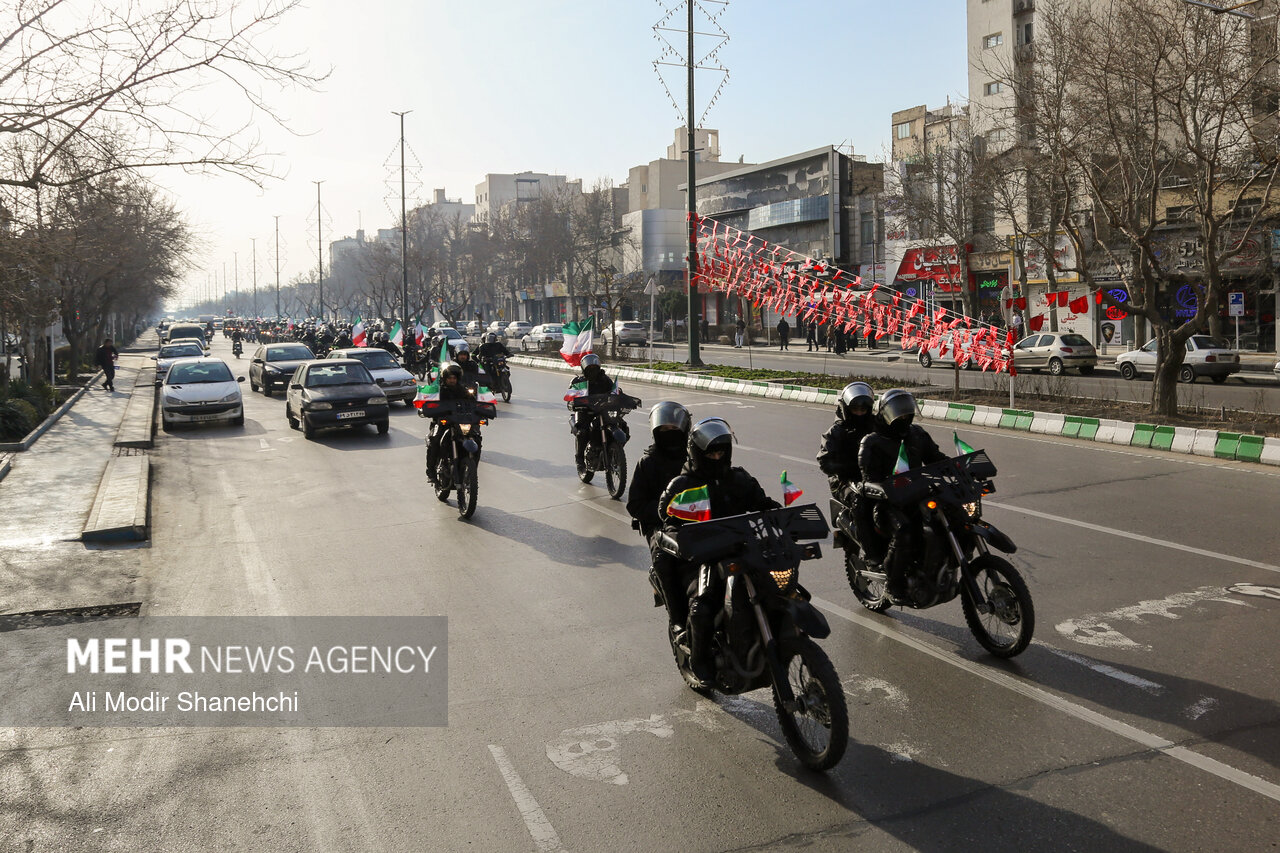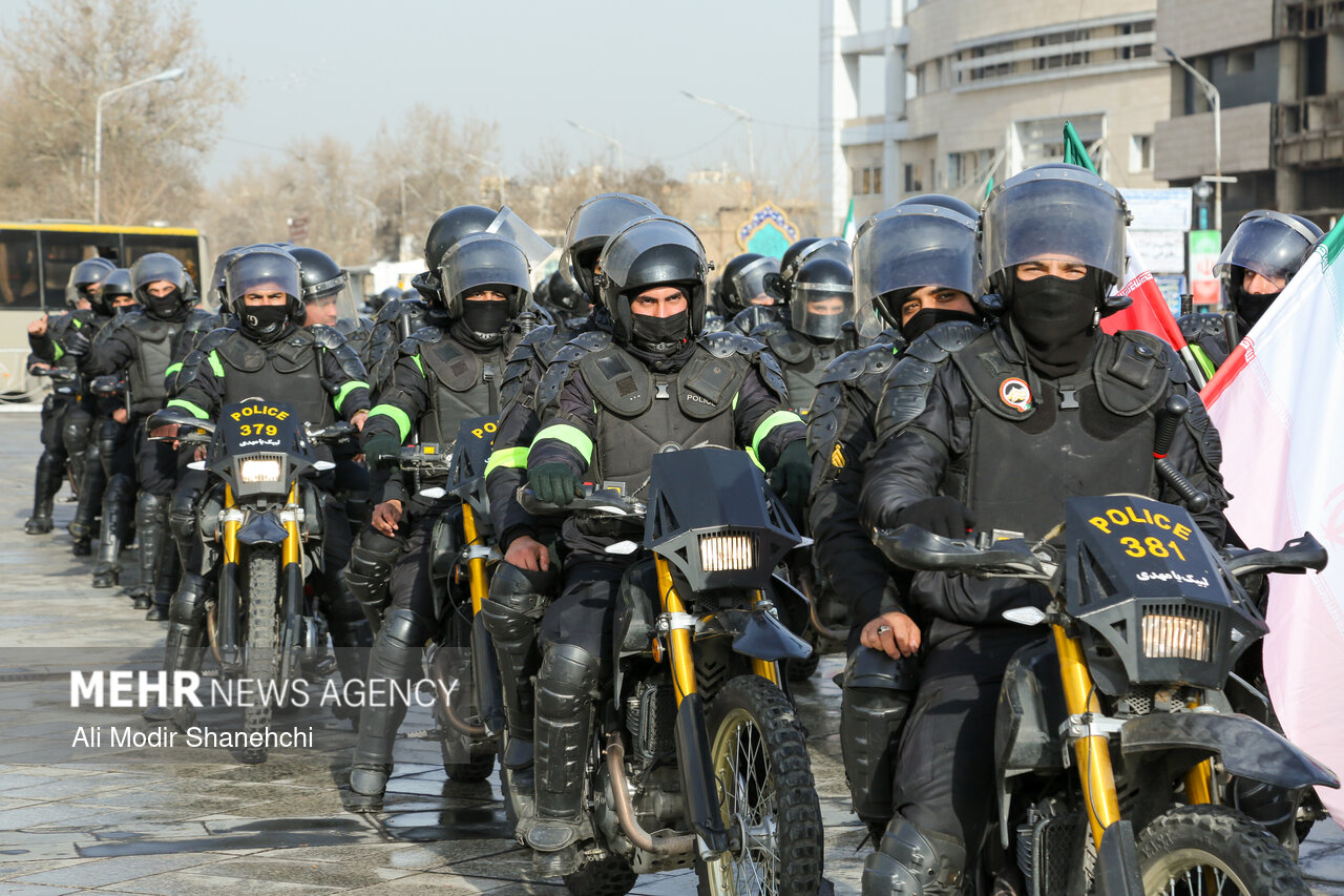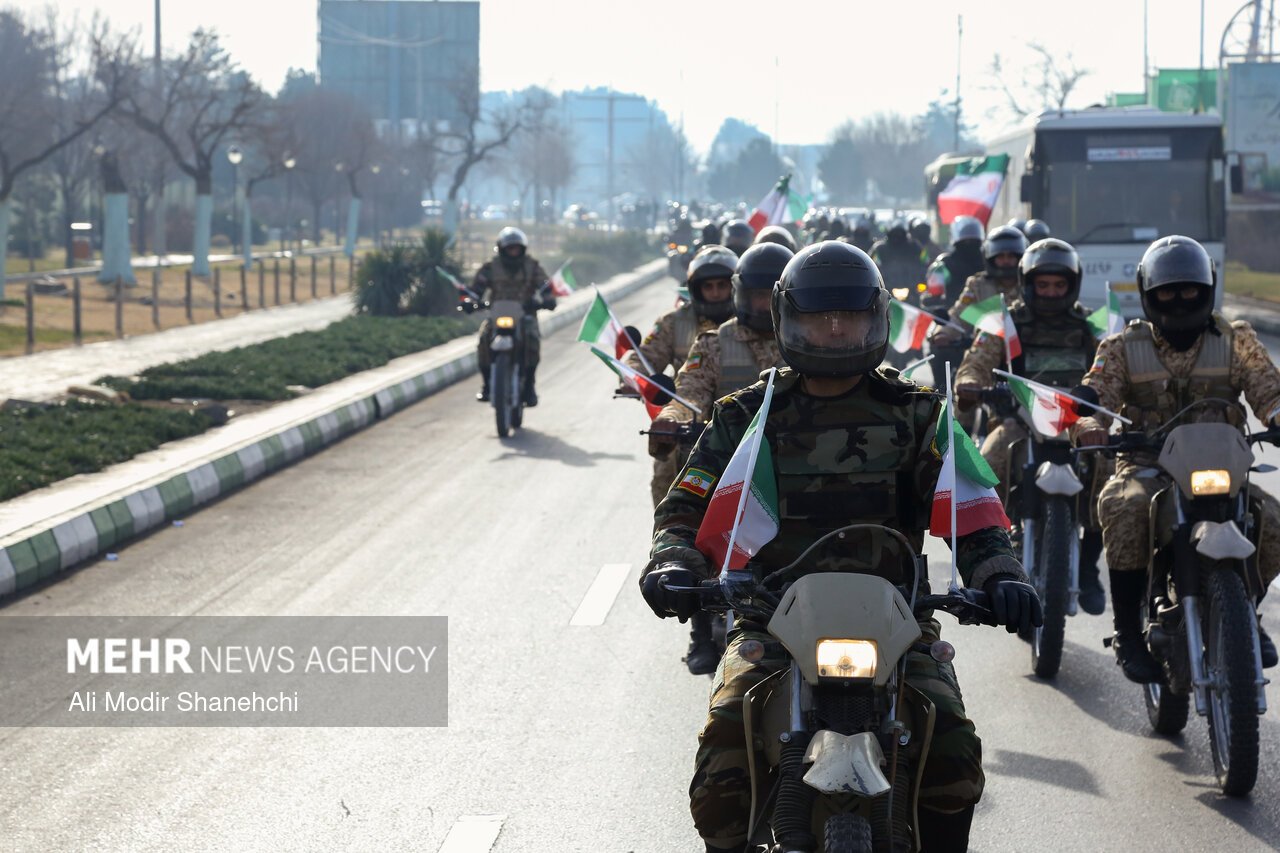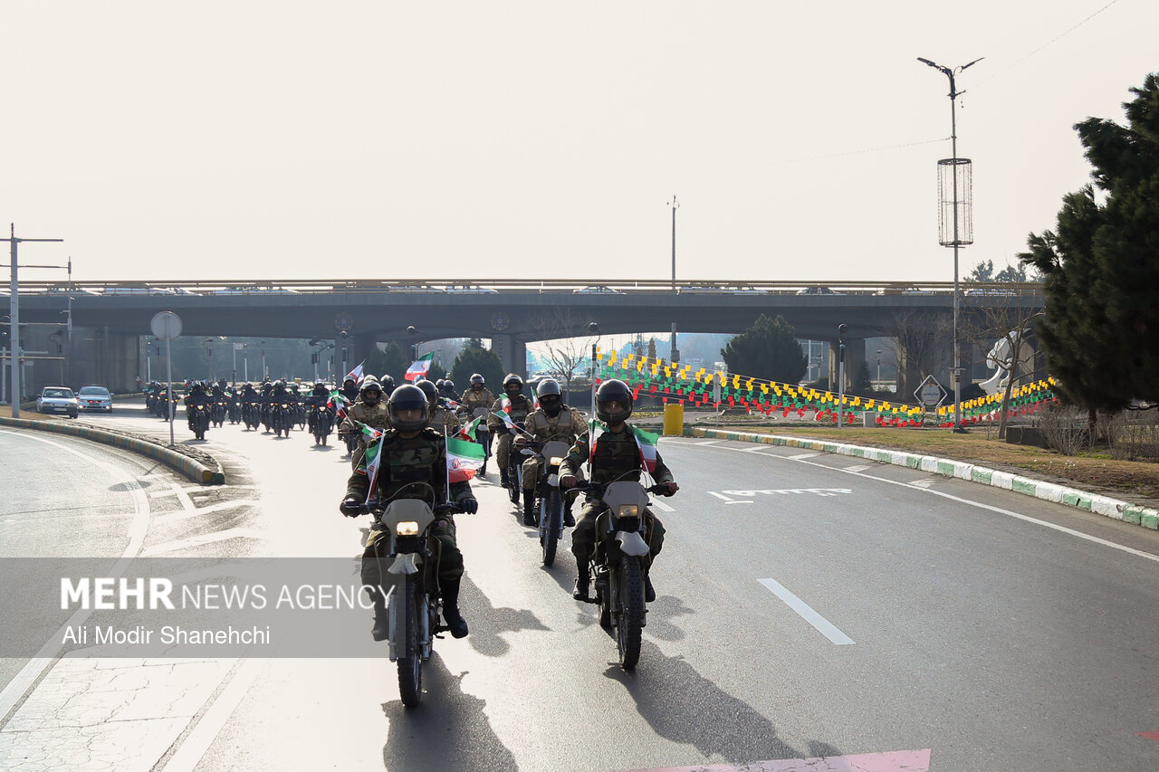 صبح امروز همزمان با آغاز دهه فجر، مراسم رژه اقتدار موتوری نیروهای مسلح خراسان رضوی از بلوار فرودگاه به سمت میدان شهدا در مشهد برگزار شد.