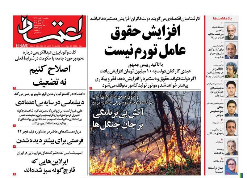 مذاکرات جدید هستهای ثابت کرد نابودی توان هستهای ایران دروغ است، چرخش ناگزیر، سکولاریسم جعفر، میخواهیم زندگی کنیم، زن بردگی رسوایی و...از جمله تیترهای روزنامههای دوشنبه ۲۰ بهمن ۱۴۰۴ هستند.