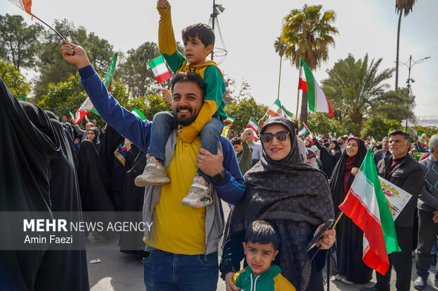 مردم این شهرستان، با در دست داشتن پرچمهای جمهوری اسلامی ایران و تصاویری از امام خمینی (ره) و رهبر معظم انقلاب اسلامی، با شور و نشاط به خیابانها آمدند و شعارهای فریادرسی و حمایت از آرمانهای انقلاب اسلامی سر دادند.