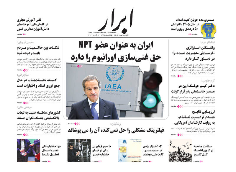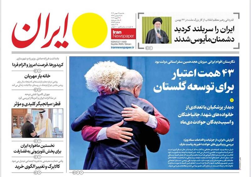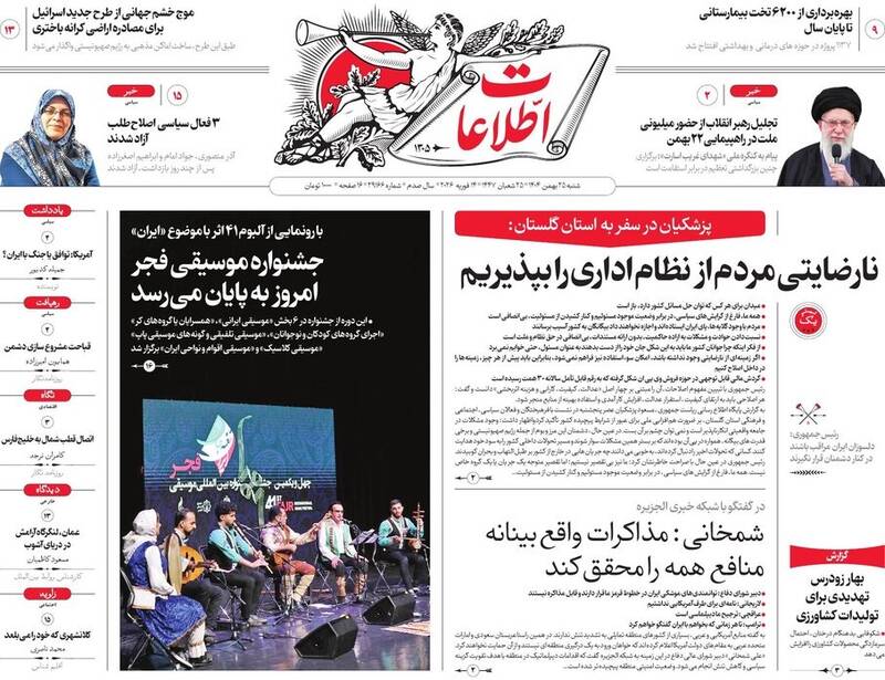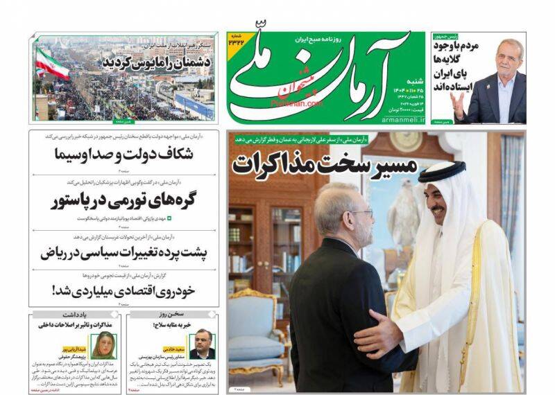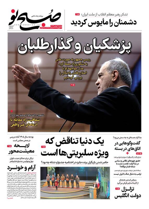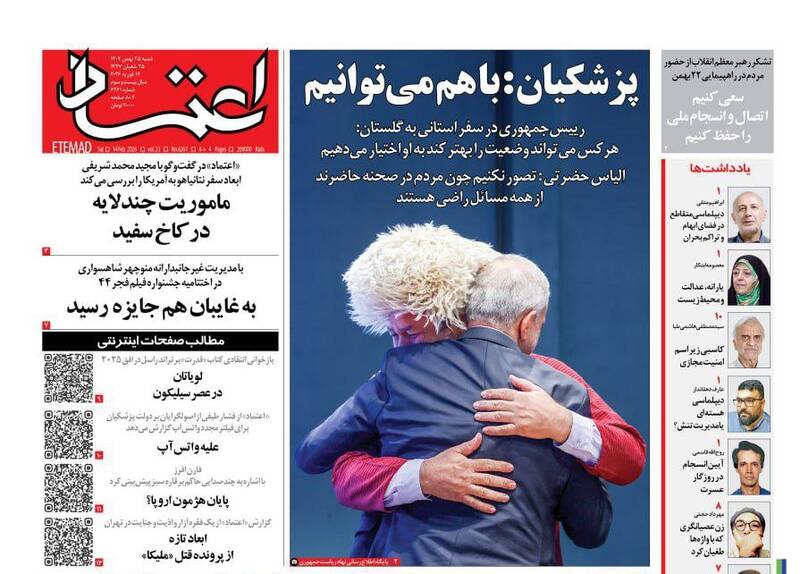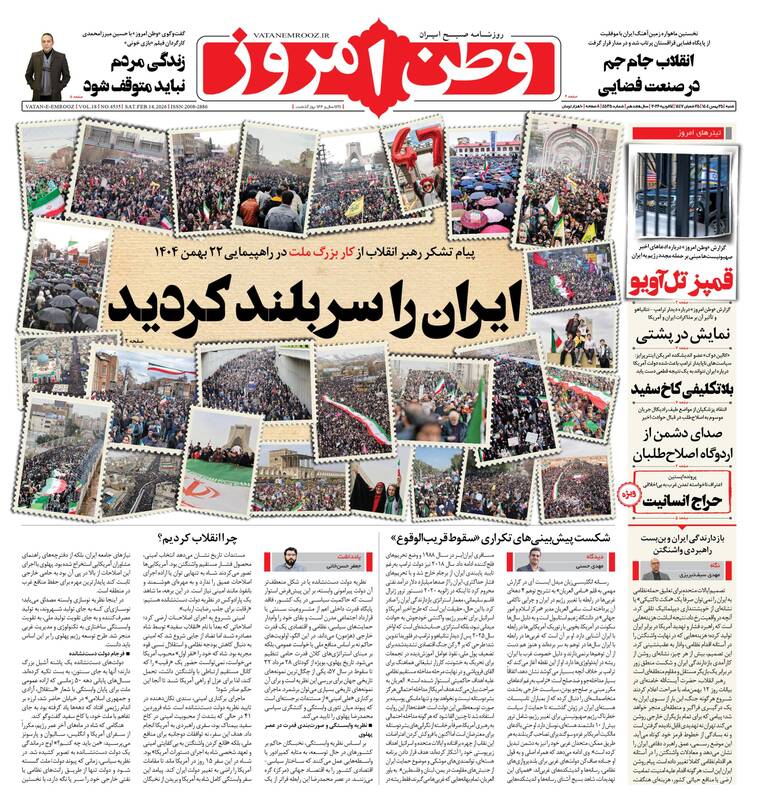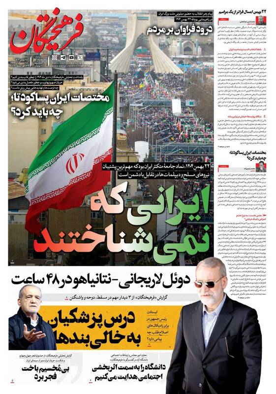 ایران را سربلند و دشمن را مایوس کردید. ایرانی که نمی‌شناختید، پزشکیان و گذارطلبان، تجلی وحدت ملی، ایران را سربلند کردید و...از جمله تیترهای روزنامه‌های ‌شنبه ۲۵ بهمن ۱۴۰۴ هستند.
