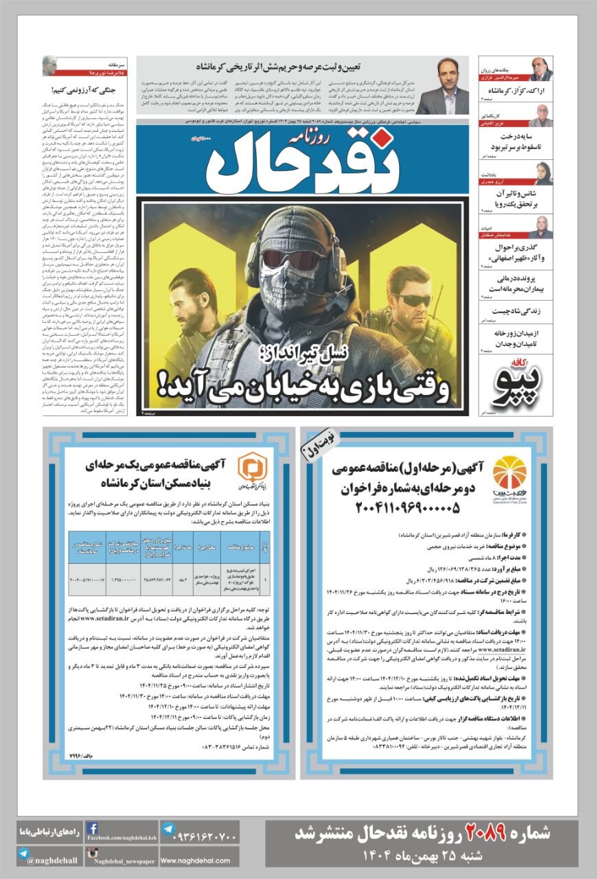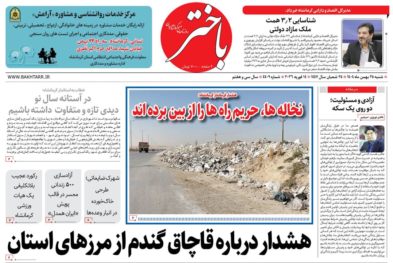صفحه اول روزنامه‌های کرمانشاه شنبه ۲۵ بهمن ماه