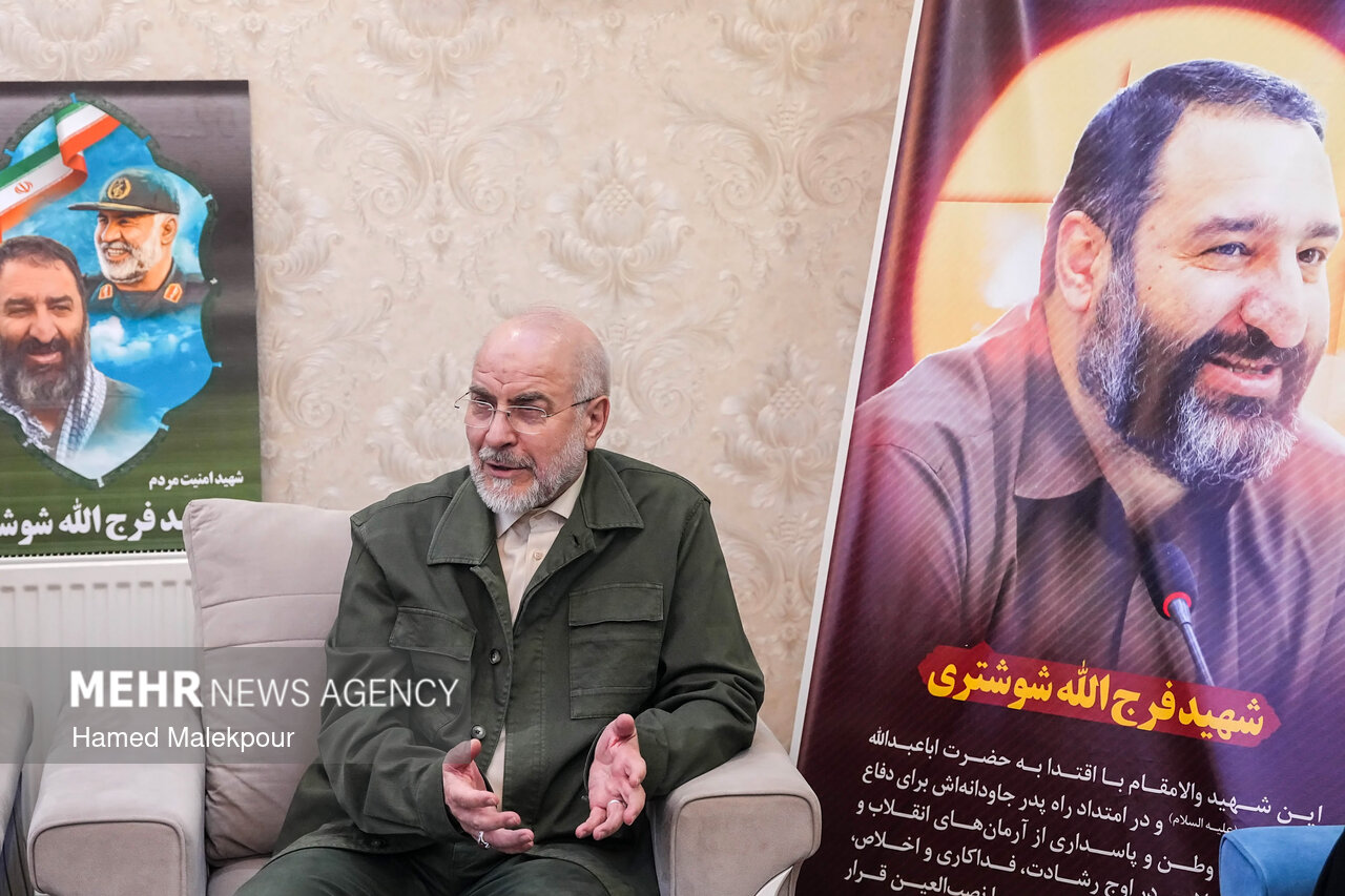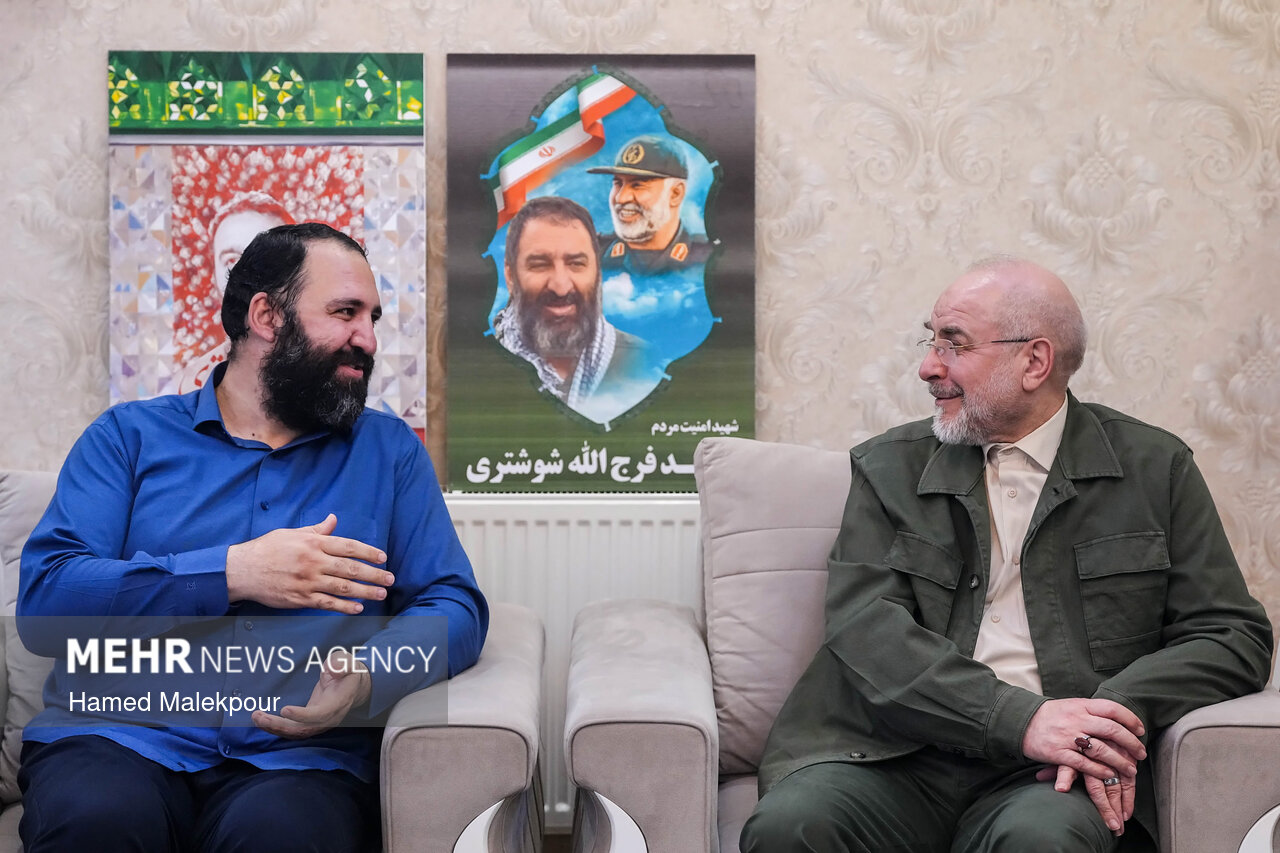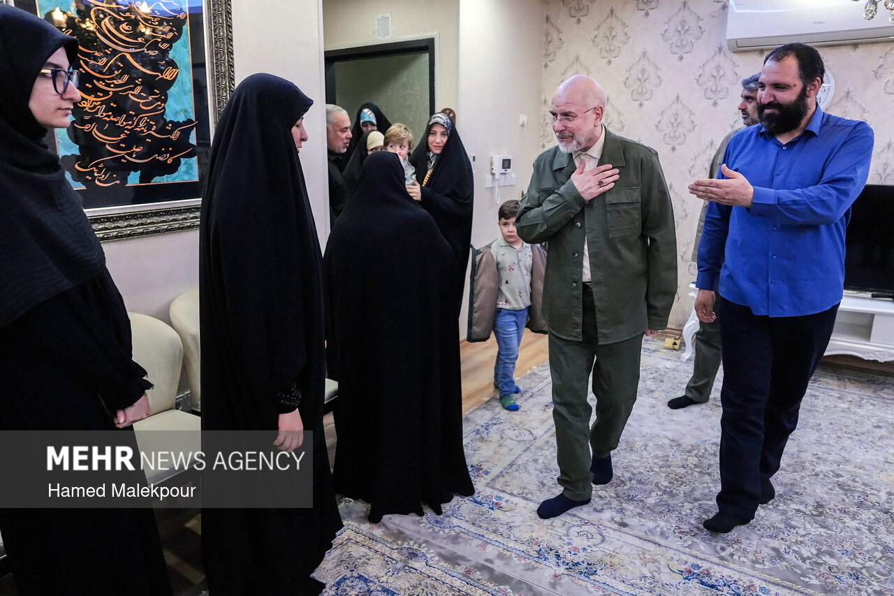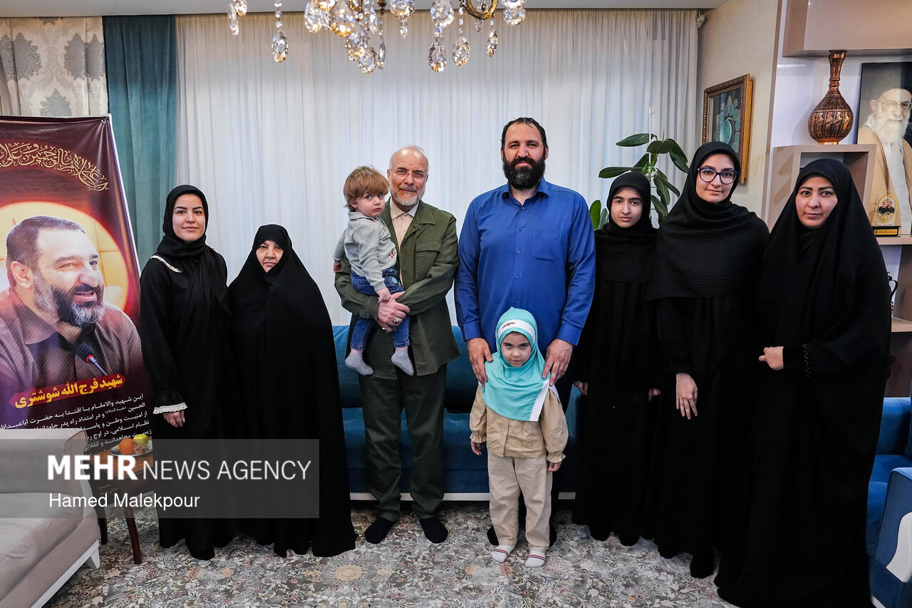 محمدباقر قالیباف رئیس مجلس شورای اسلامی عصر امروز جمعه ۲۴ بهمن ماه ۱۴۰۴ در منزل شهید فرج‌الله شوشتری از شهدای اغتشاشات تروریستی اخیر در مشهد مقدس حضور یافت و با خانواده این شهید والامقام دیدار و گفت‌وگو کرد.