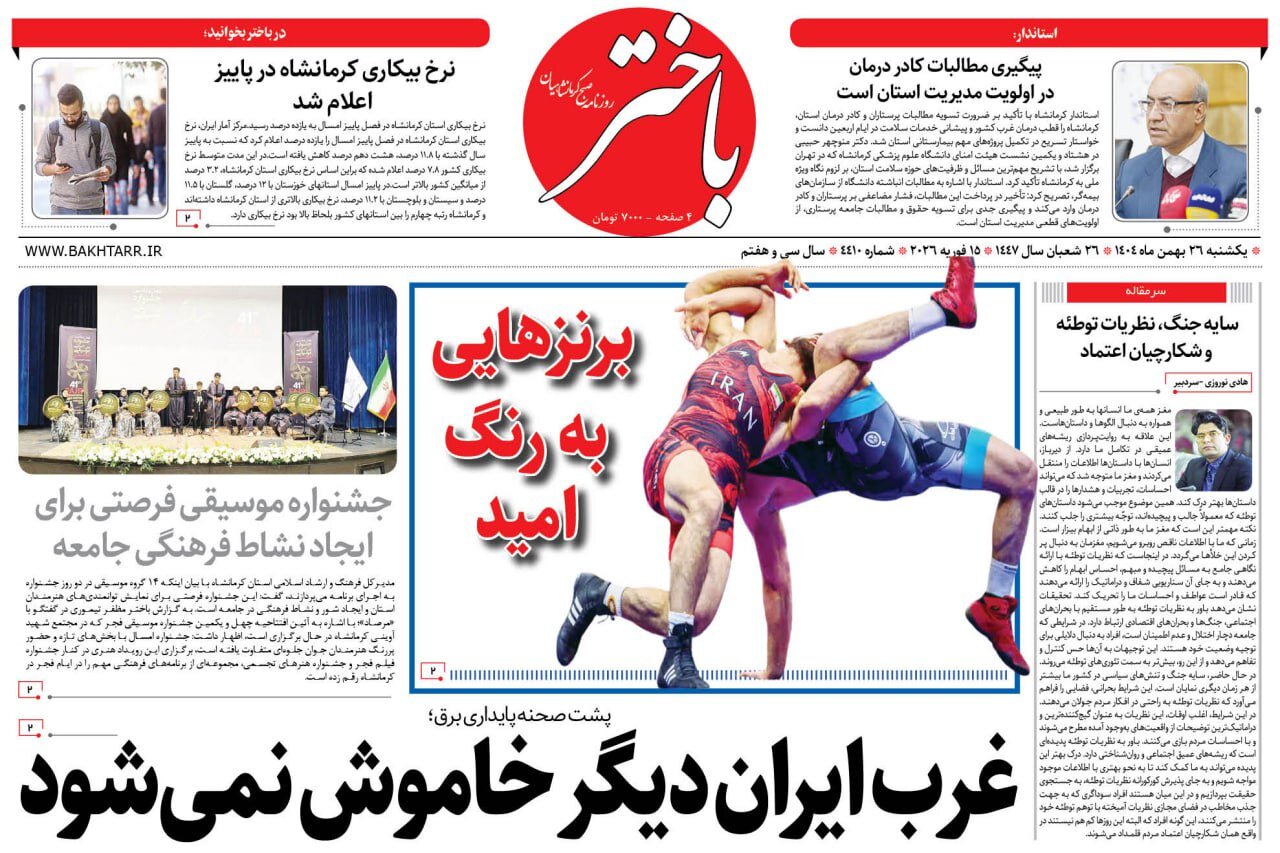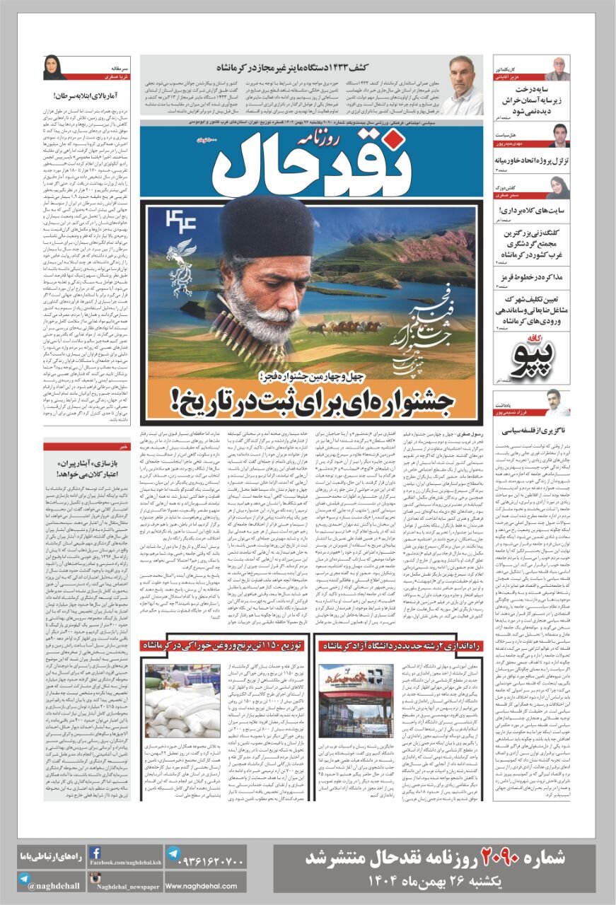 صفحه اول روزنامه‌های کرمانشاه یکشنبه ۲۶ بهمن ماه