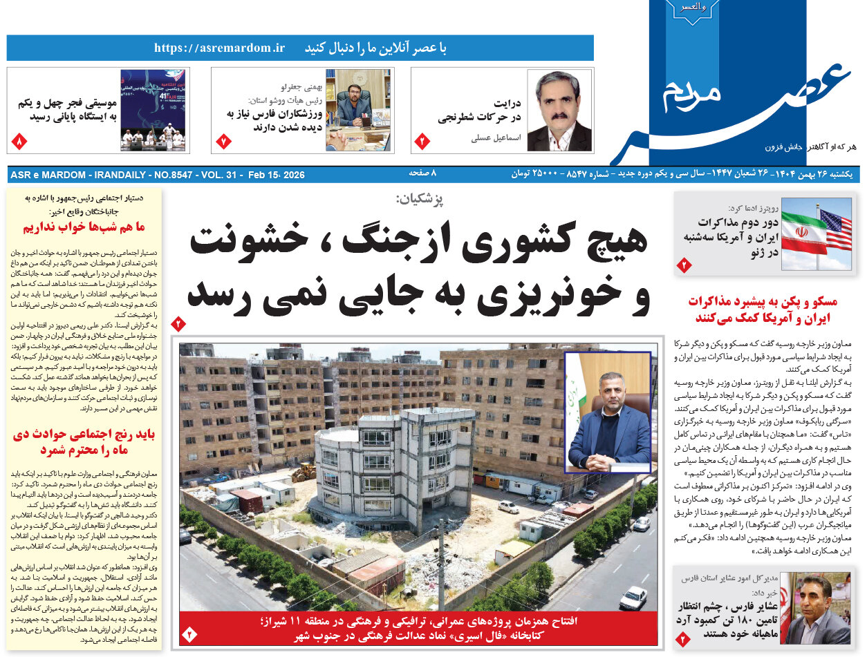 صفحه نخست روزنامه های استان فارس یکشنبه ۲۶ بهمن ماه