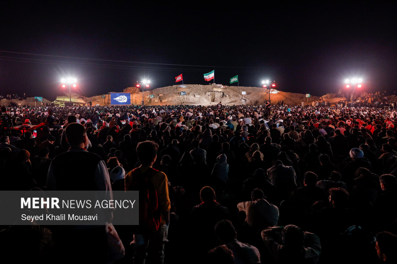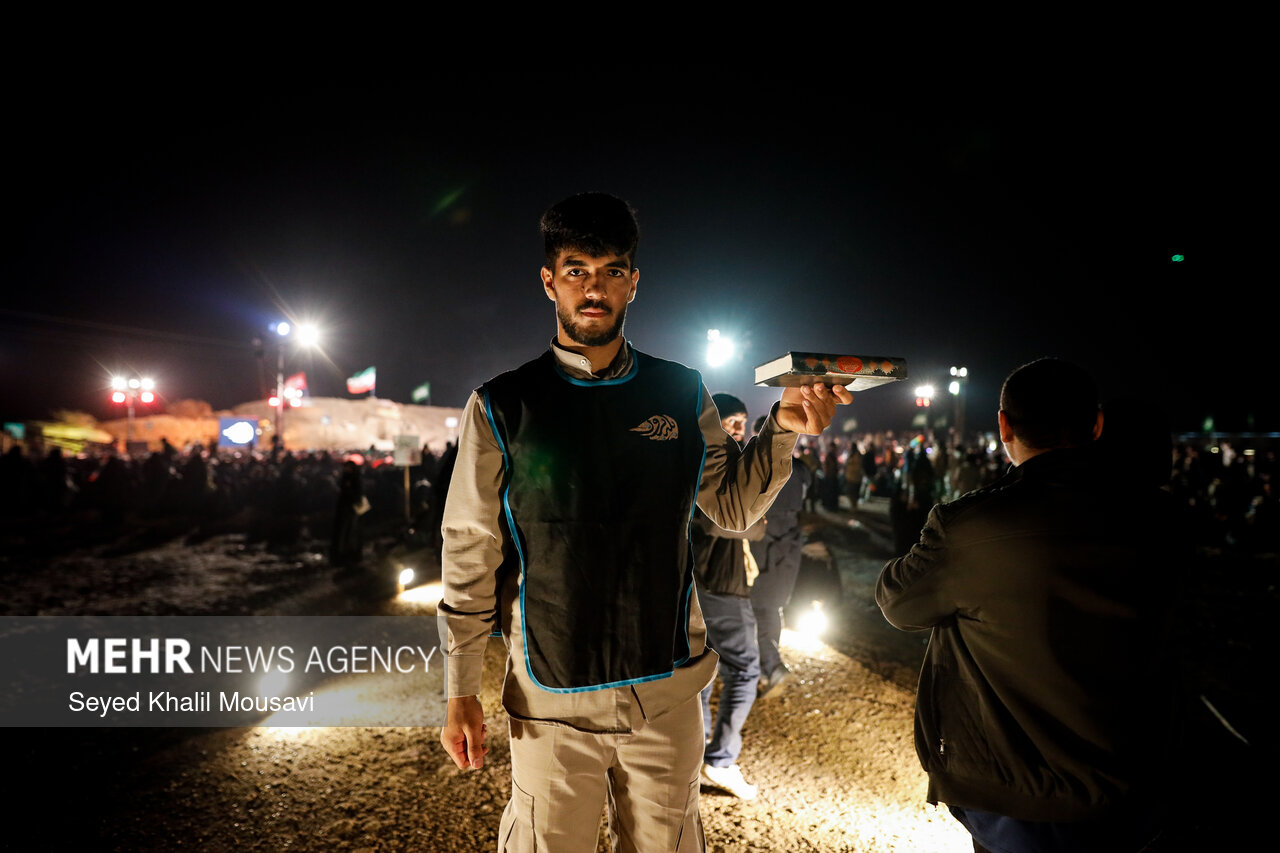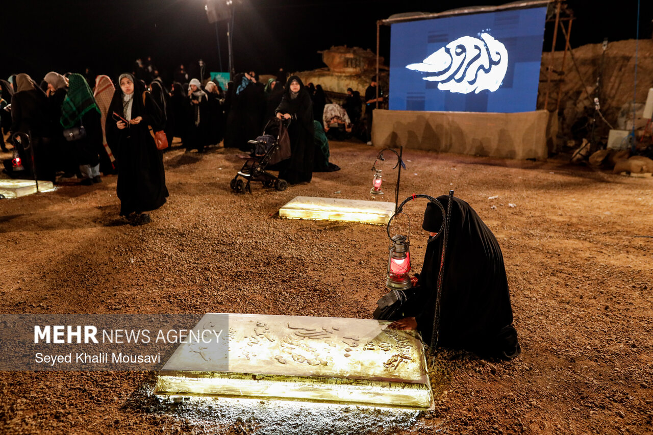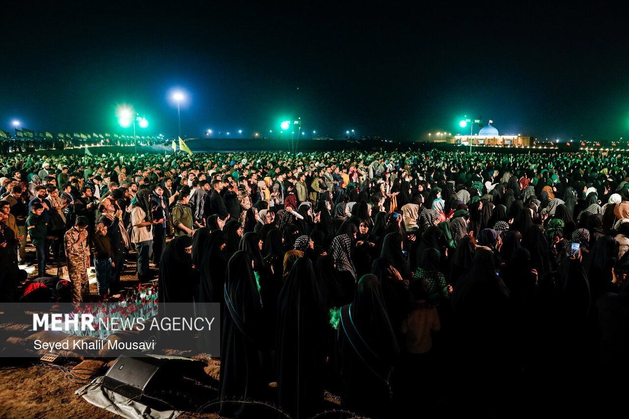 ویژه برنامه شب های بله برون شلمچه با روایتگری حاج حسین یکتا با حضور کاروان های راهیان نور در یادمان شلمچه برگزار شد.