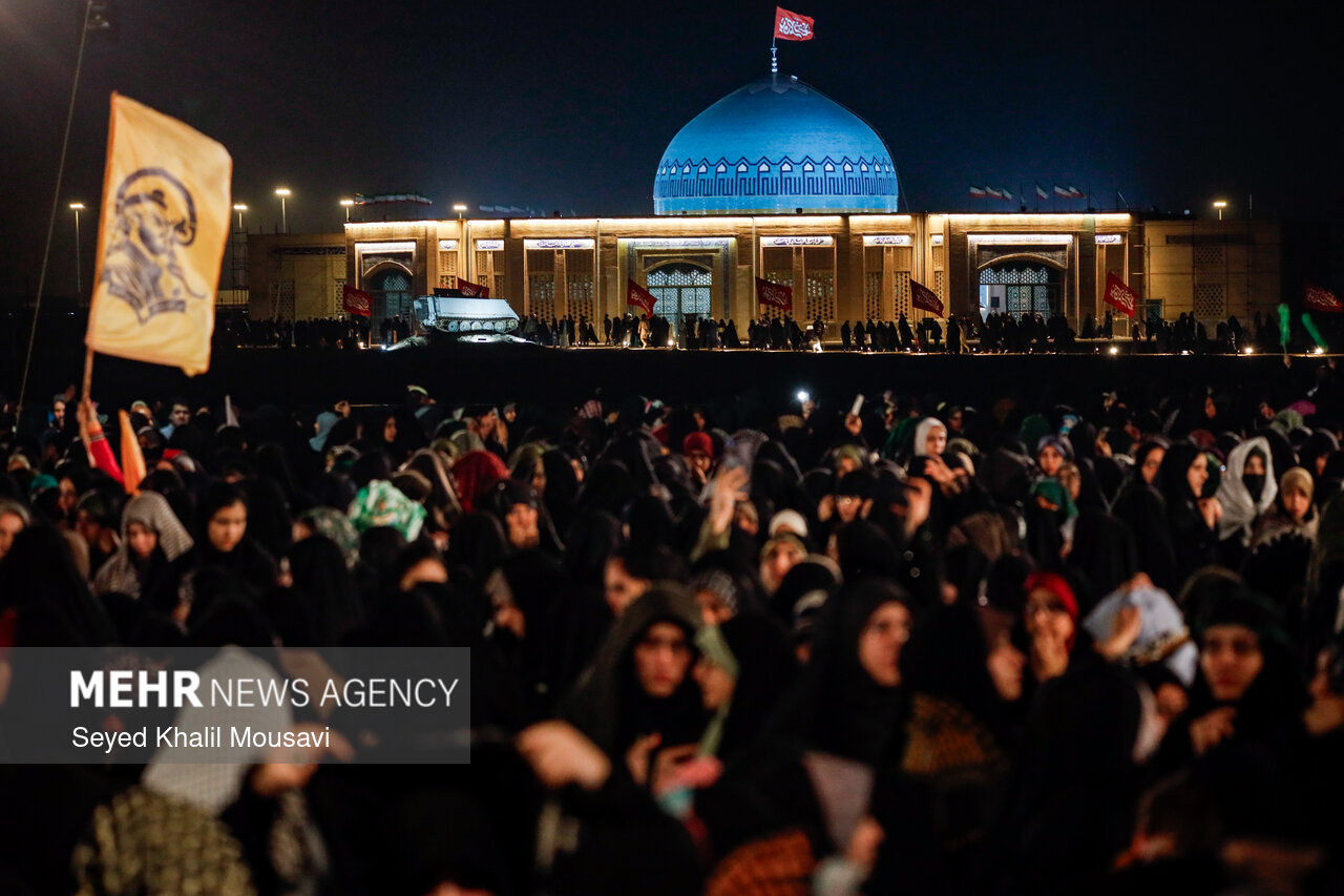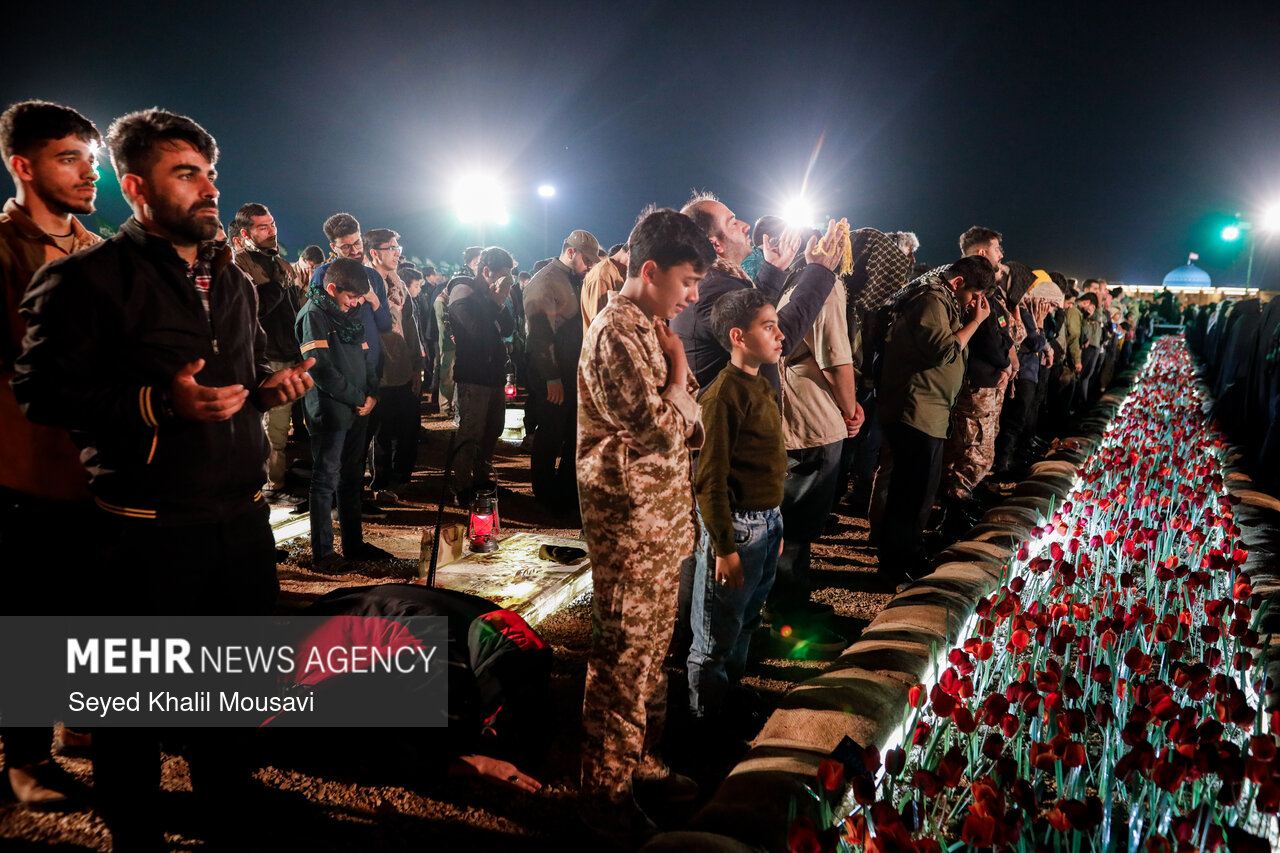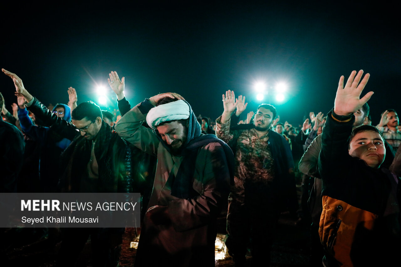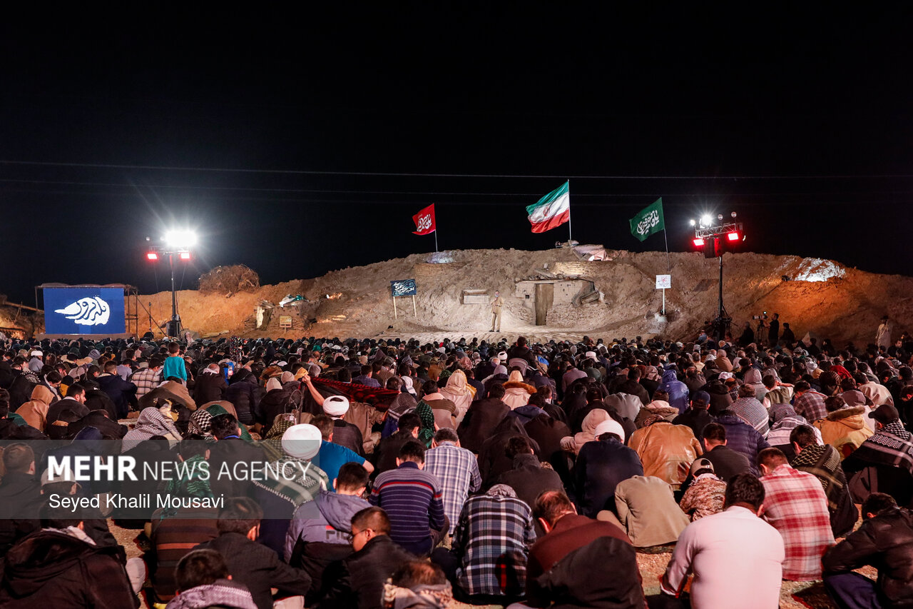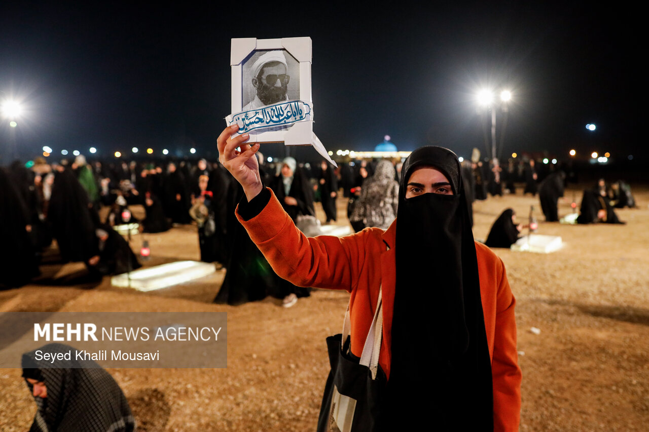 ویژه برنامه شب های بله برون شلمچه با روایتگری حاج حسین یکتا با حضور کاروان های راهیان نور در یادمان شلمچه برگزار شد.