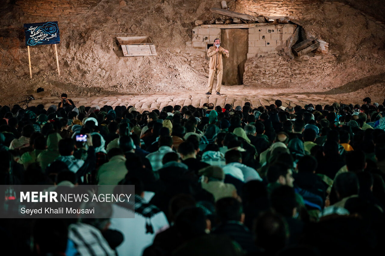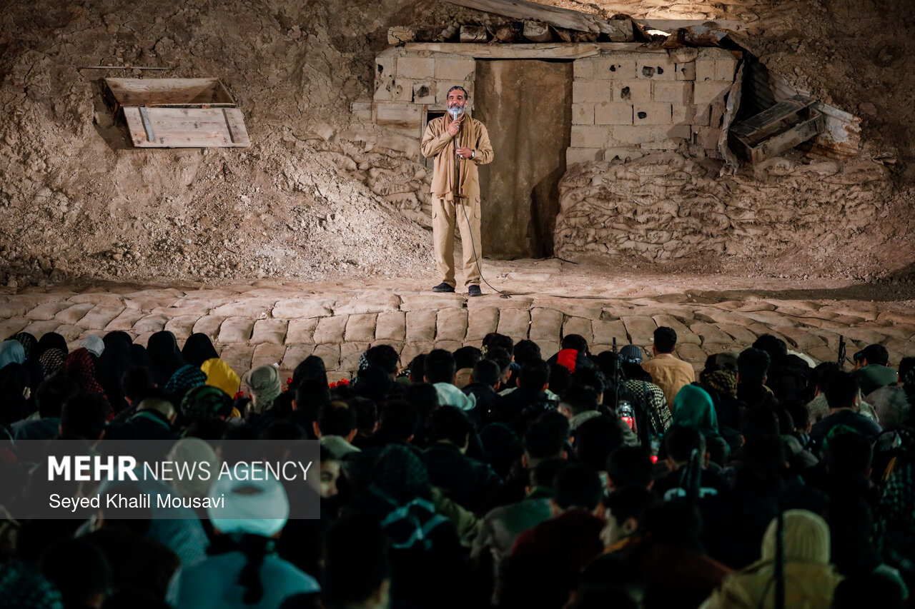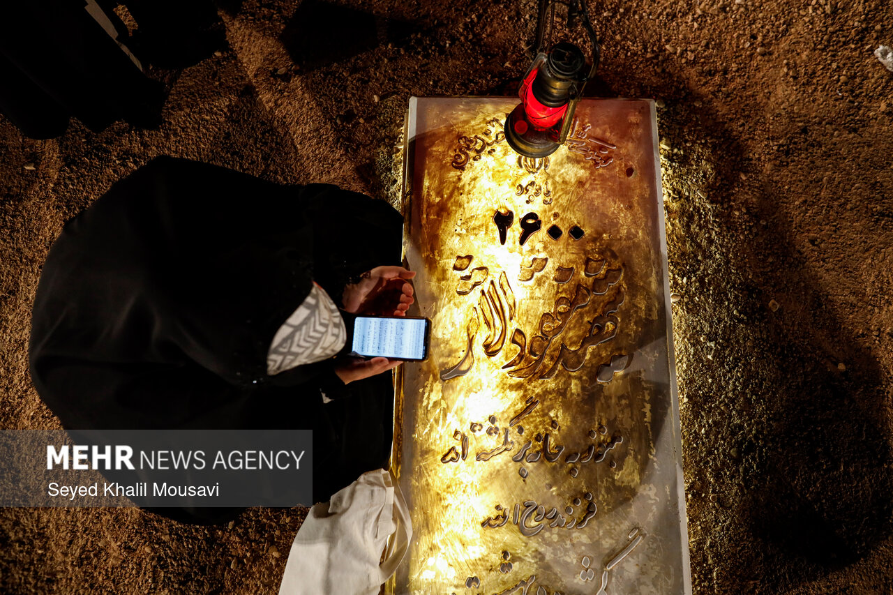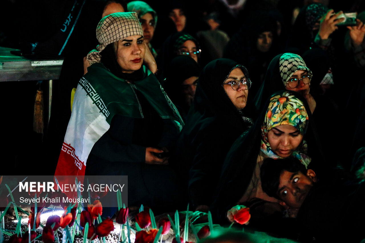 ویژه برنامه شب های بله برون شلمچه با روایتگری حاج حسین یکتا با حضور کاروان های راهیان نور در یادمان شلمچه برگزار شد.