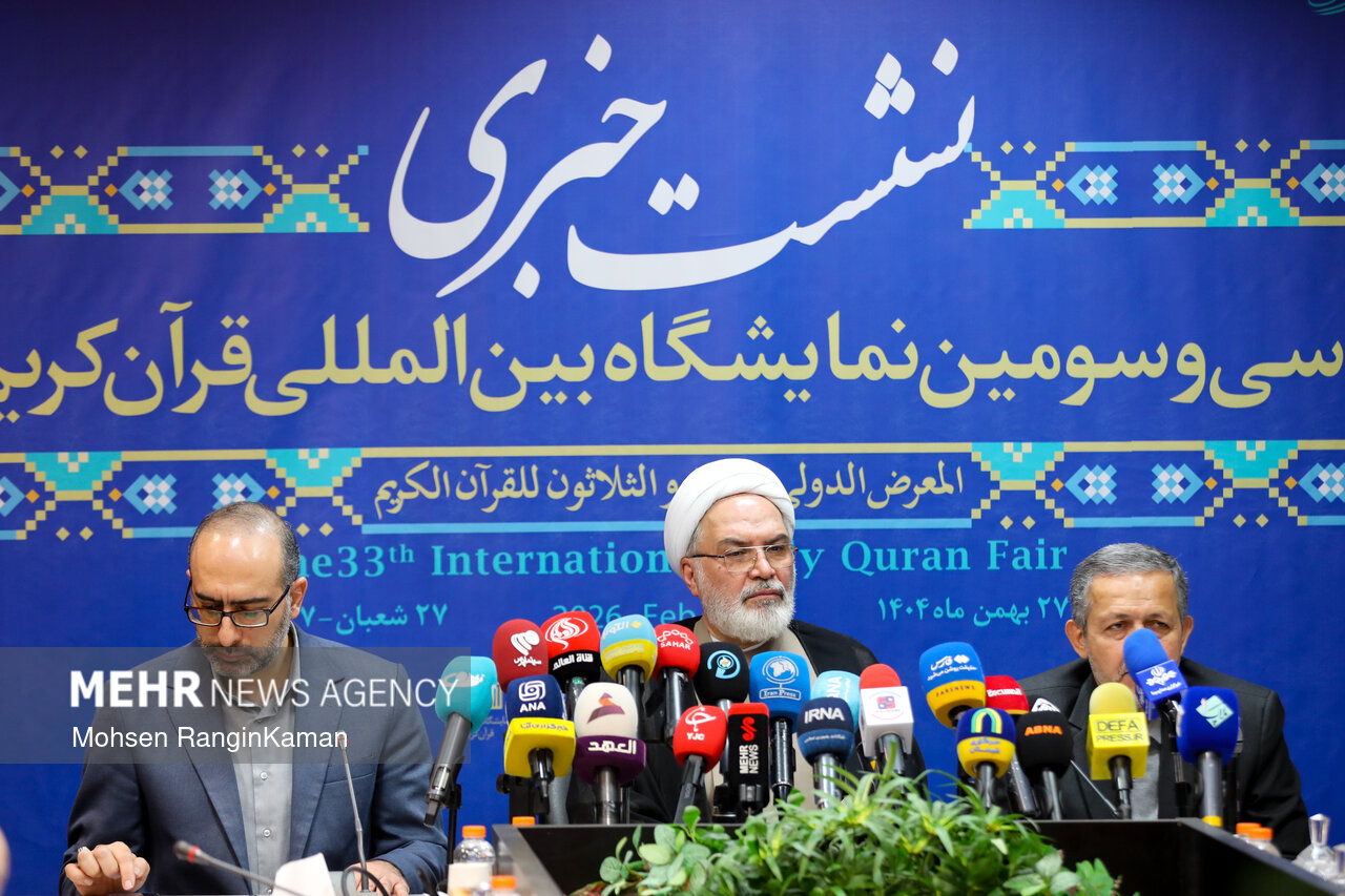 نشست خبری سی‌ودومین نمایشگاه بین‌المللی قرآن کریم صبح روز دوشنبه ۲۷ بهمن ۱۴۰۴ با حضور حجت‌الاسلام حمیدرضا ارباب‌سلیمانی معاون قرآن و عترت وزیر فرهنگ و ارشاد اسلامی برگزار شد.