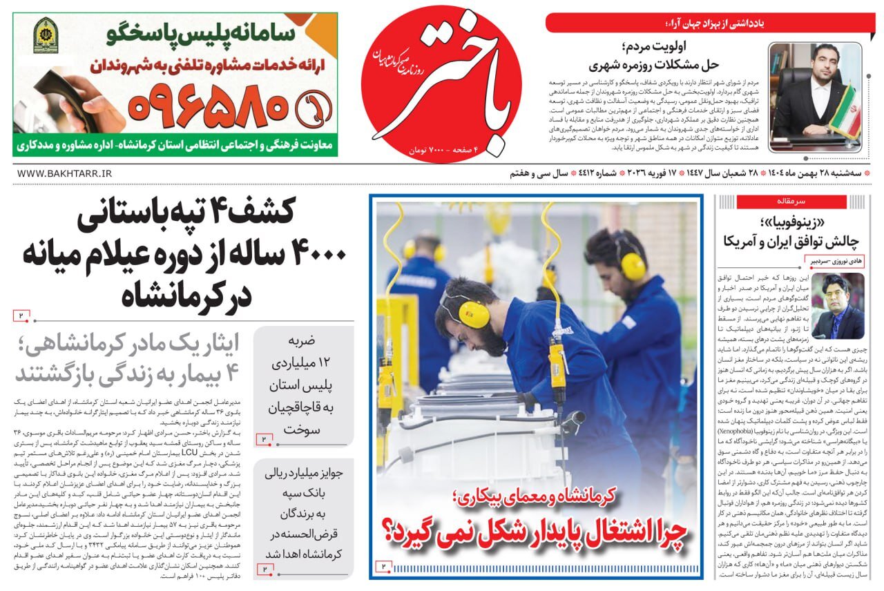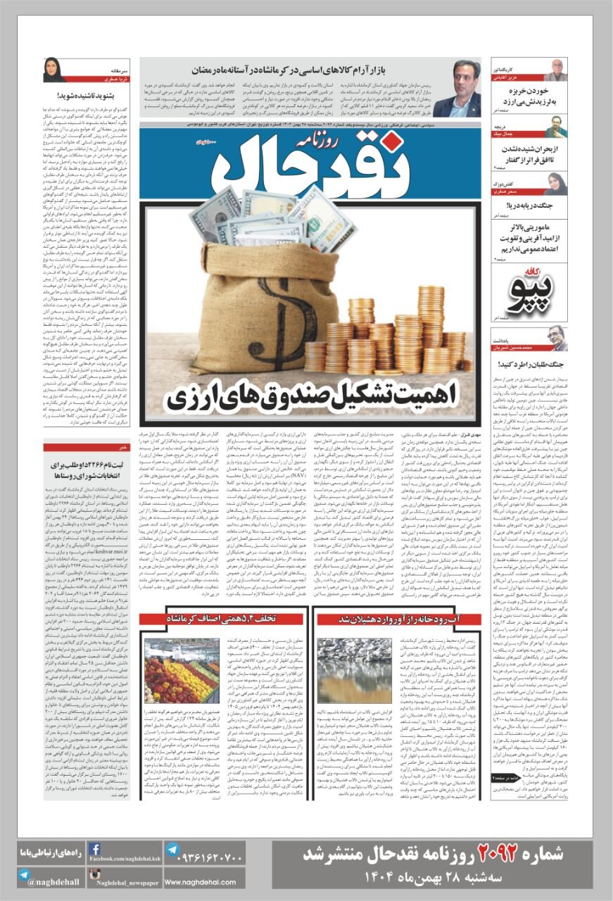 صفحه اول روزنامه‌های کرمانشاه سه‌شنبه ۲۸ بهمن ماه