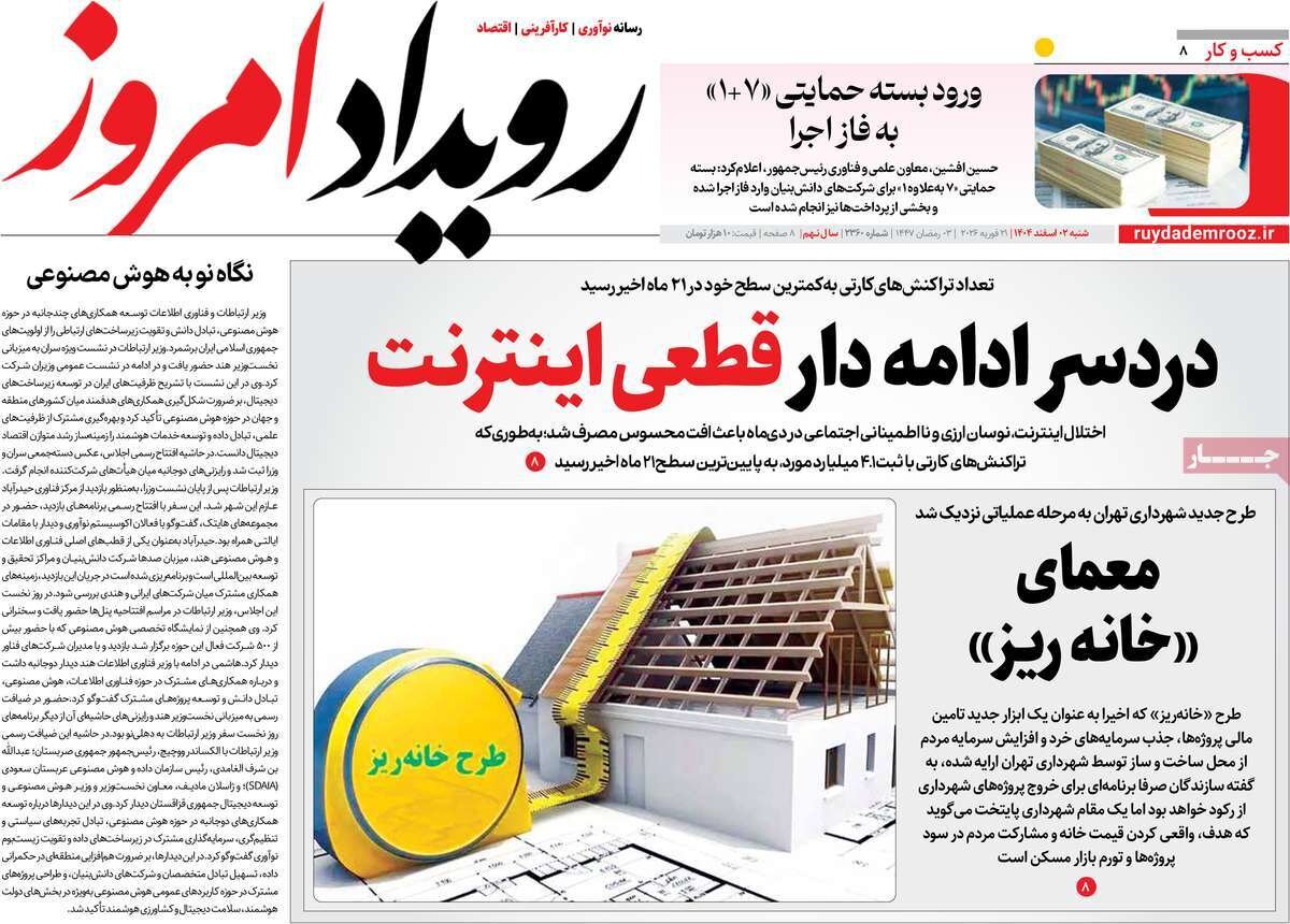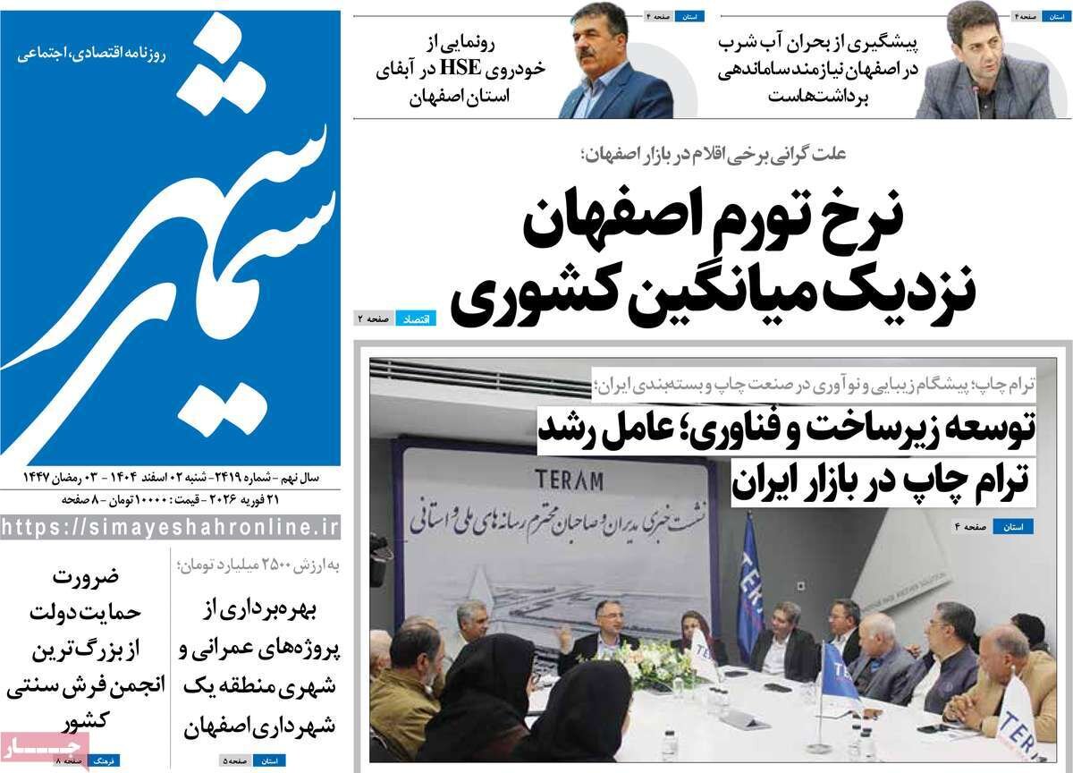 صفحه اول روزنامه های اصفهان شنبه ۲ اسفند ماه