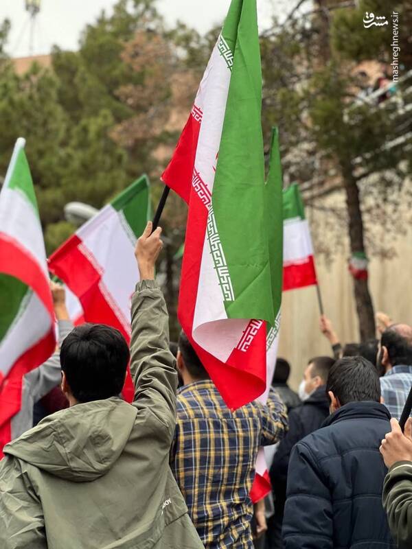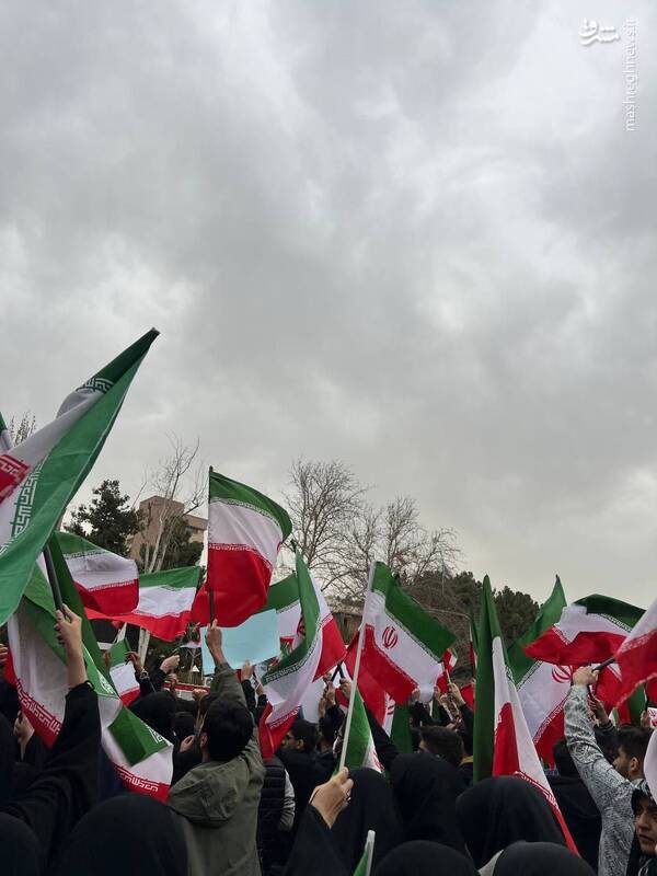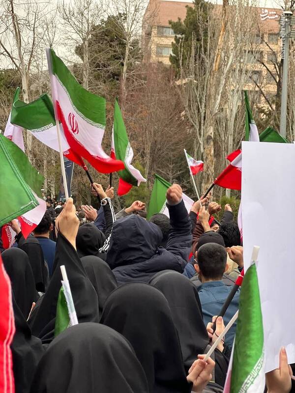 تصاویری از حضور دانشجویان دانشگاه شهید بهشتی با پرچم ایران در حیاط دانشگاه در اعتراض به اهانت به پرچم ایران را ببینید.