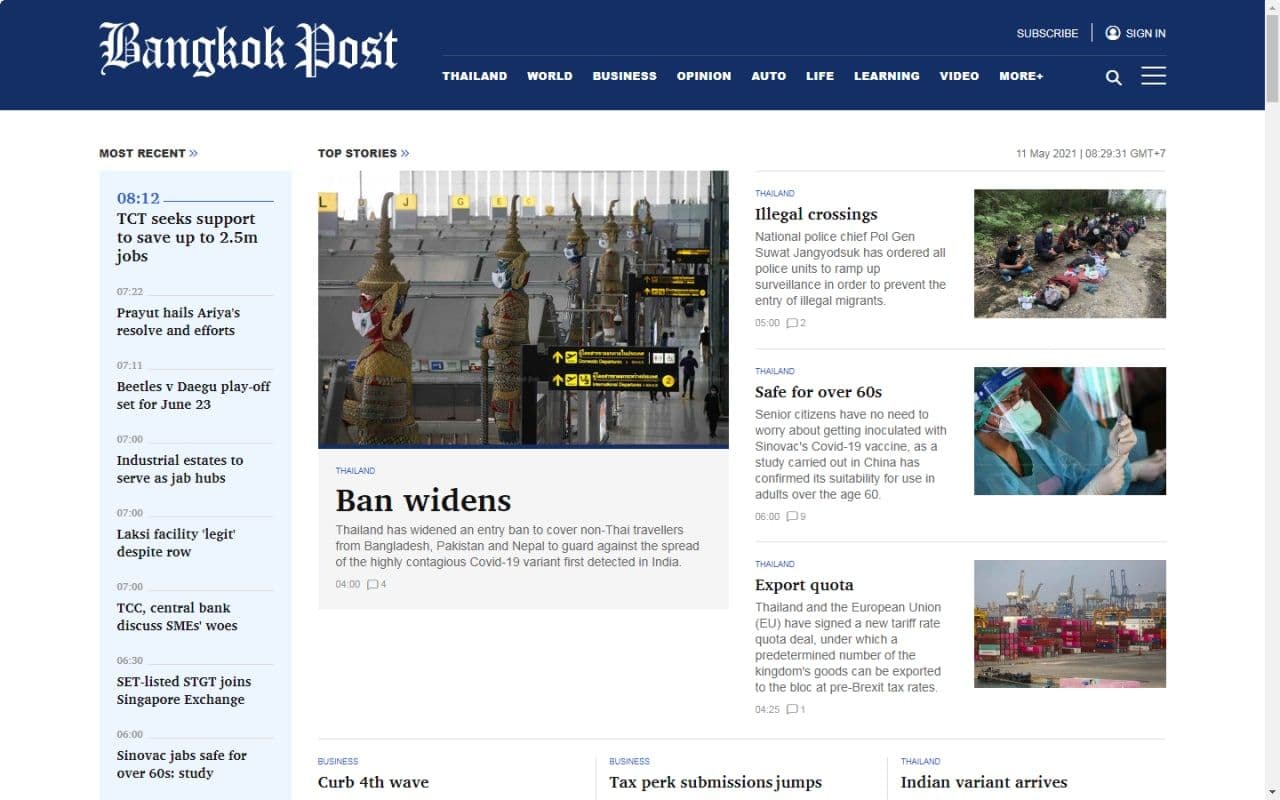 - تایلند ورود مسافران خارجی آلوده به کرونای هندی را از کشورهای نپال، پاکستان و بنگلادش ممنوع کرد.