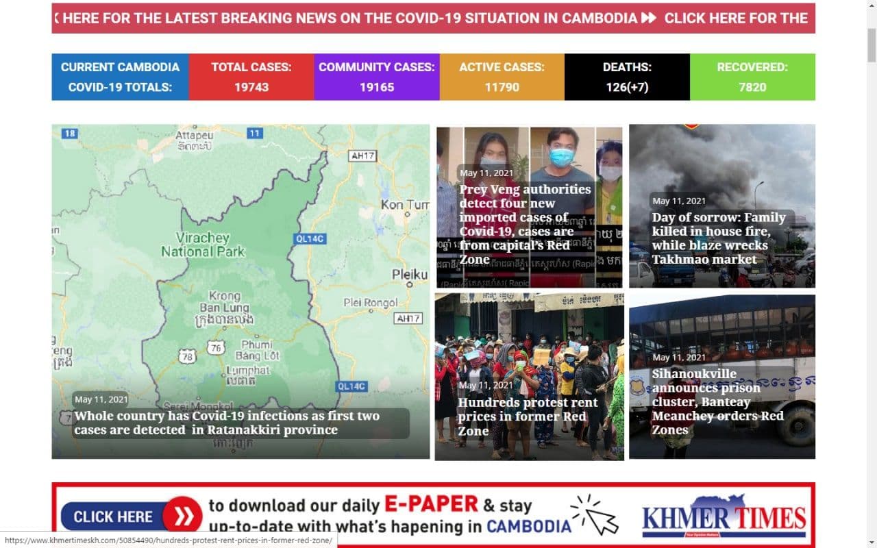 - تعداد کل مبتلایان به کرونا در کامبوج با ثبت ۵۰۶ مورد جدید به ۱۹ هزار و ۷۴۳ نفر افزایش یافت و مجموع جان باختگان کرونایی این کشور نیز به ۱۲۶ نفر رسید.