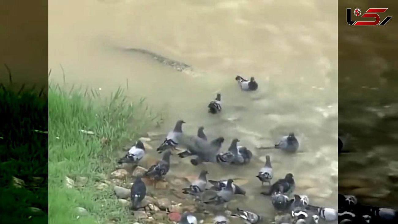 به گزارش رکنا ، گروهی از کبوترها برای نوشیدن آب به لب رودخانه‌ای رفته بودند که یک گربه ماهی در آنجا کمین کرده بود.