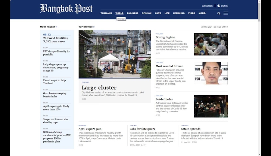 - یک خوابگاه بزرگ کارگری در بانکوک پایتخت تایلند به علت شناسایی و ثبت شمار زیادی از کارگران آلوده به کووید تعطیل شد.