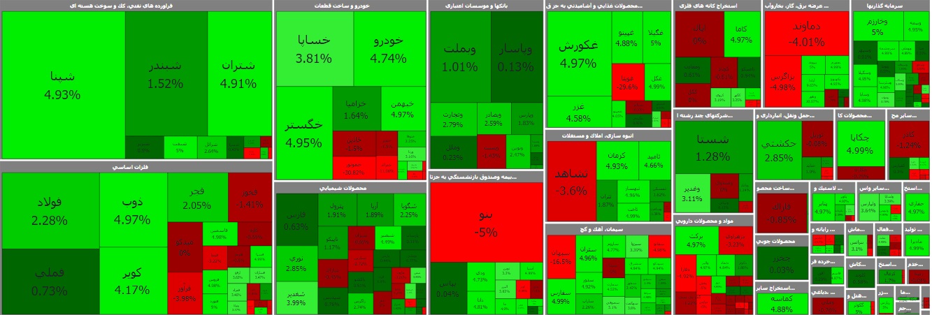 نمادهای فولاد، شپنا، فارس و شتران بیشترین تاثیر را در رشد شاخص داشتند.