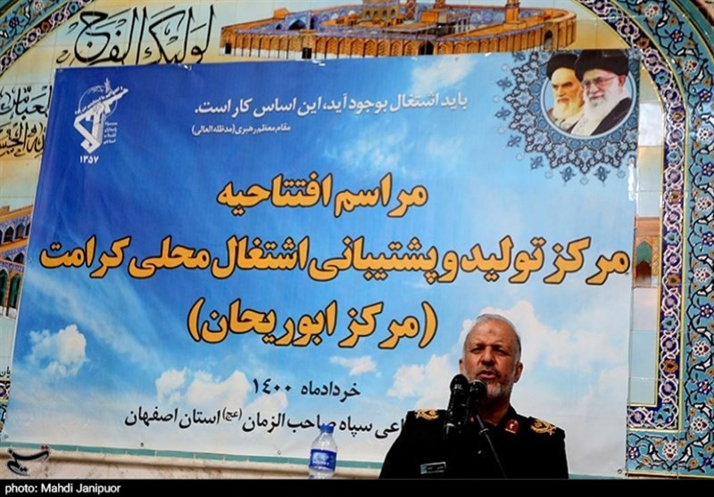 آیین افتتاحیه مرکز تولید و پشتیبانی اشتغال محلی کرامت با سخنرانی سردار مجتبی فدا، فرمانده سپاه صاحبالزمان (عج) اصفهان همراه بود.