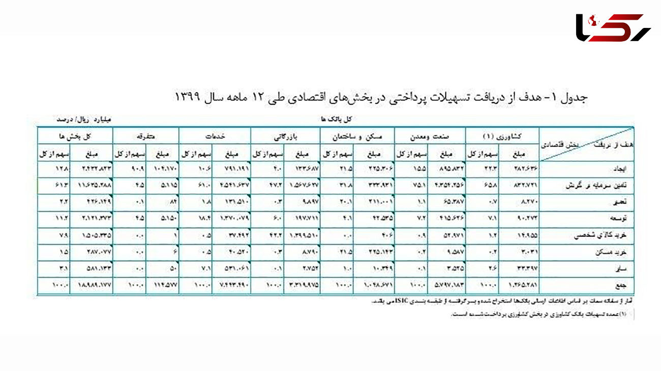 به گزارش رکنا، به نقل از روابط عمومی بانک مرکزی ، جدول 1 بیانگر هدف از دریافت تسهیلات پرداختی در بخشهای اقتصادی طی 12 ماهه سال 1399 است. سهم تسهیلات پرداختی در قالب سرمایه در گردش در کلیه بخشهای اقتصادی طی 12 ماهه سال جاری مبلغ 11.635.3هزار میلیارد ریال معادل 61.3 درصد کل تسهیلات پرداختی میباشد که در مقایسه با دوره مشابه سال قبل مبلغ 6.373.9 هزار میلیارد ریال معادل 121.1 درصد افزایش داشته است.