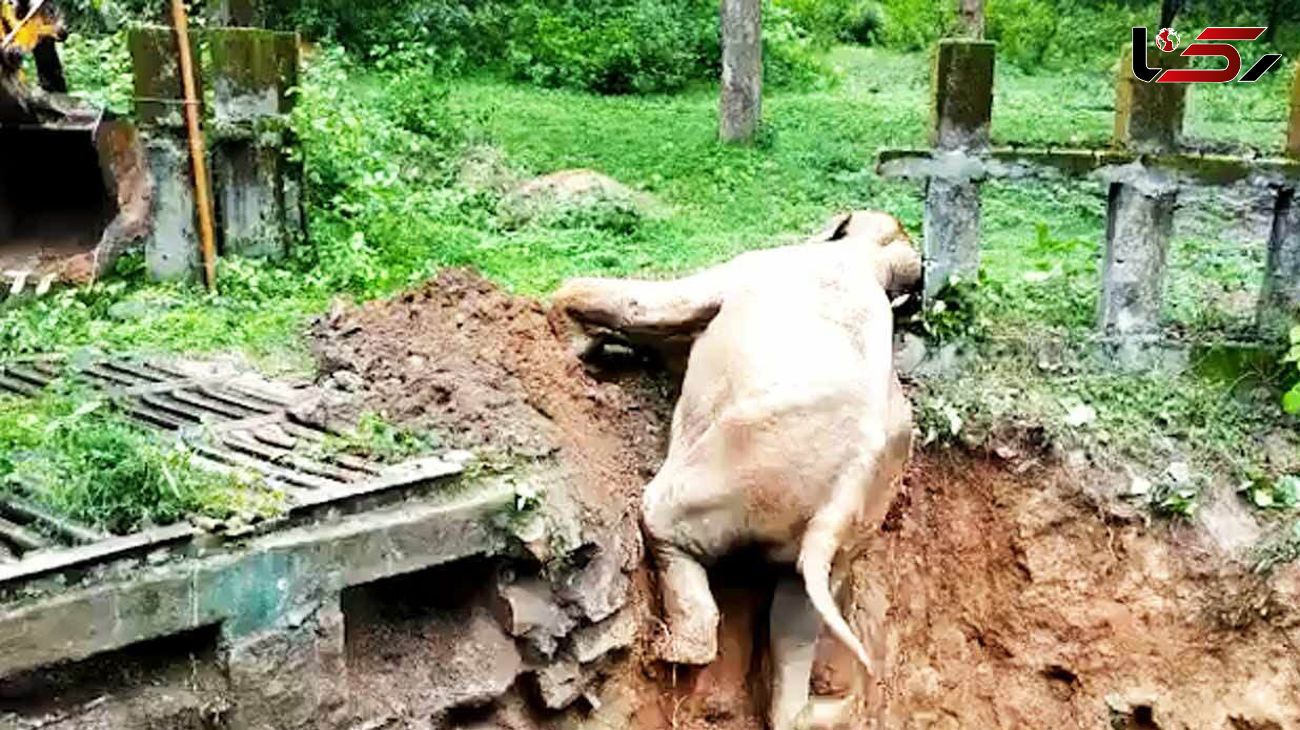 سقوط فیل به حفره عمیق + فیلم / فیل زنده ماند