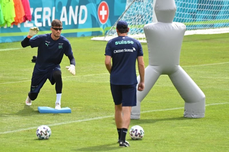 توئیتر رسمی یورو 2020 دقایقی پیش تصاویری از تمرینات امروز تیم سوئیس را منتشر کرد که بسیار جالب بود. در این تصاویر، دروازه بانان تیم ملی سوئیس با عینک آفتابی مشغول تمرین کردن زیر نظر مربی خود بودند؛ اتفاقی که کمتر شاهد آن بوده ایم و به نظر می رسد برای جلوگیری از تابش مستقیم آفتاب به چشم گلرهای سوئیس صورت گرفته است.