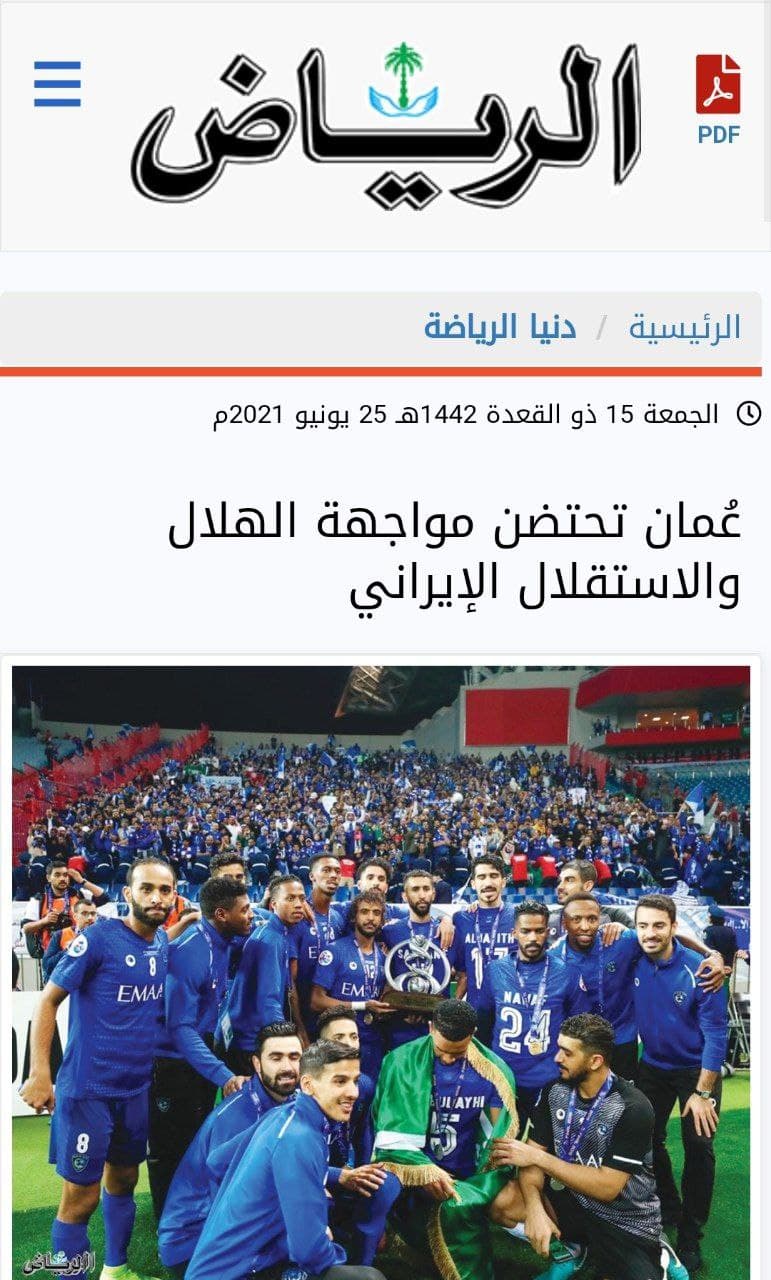 اما امروز روزنامه الریاض عربستان در خبری مدعی شد که استقلال استادیم السیب عمان را برای میزبانی از الهلال انتخاب می کند. الریاض نوشت یک منبع در یکی از کمیته های AFC اظهار داشت که تصمیم گیری در مورد ورزشگاه های بی طرف جدید نیست و مورد حمایت دادگاه CAS نیز قرار گرفته است.