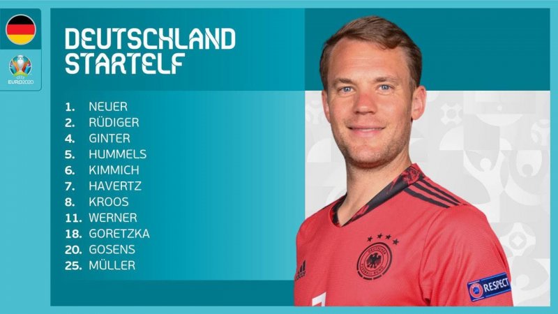 مانوئل نویر، آنتونی رودیگر، ماتیاس گینتر، متس هوملز، جوشوا کیمیش، کای هاورتز، تونی کروس، تیمو ورنر، لئون گورتزکا، روبین گوسنز و توماس مولر