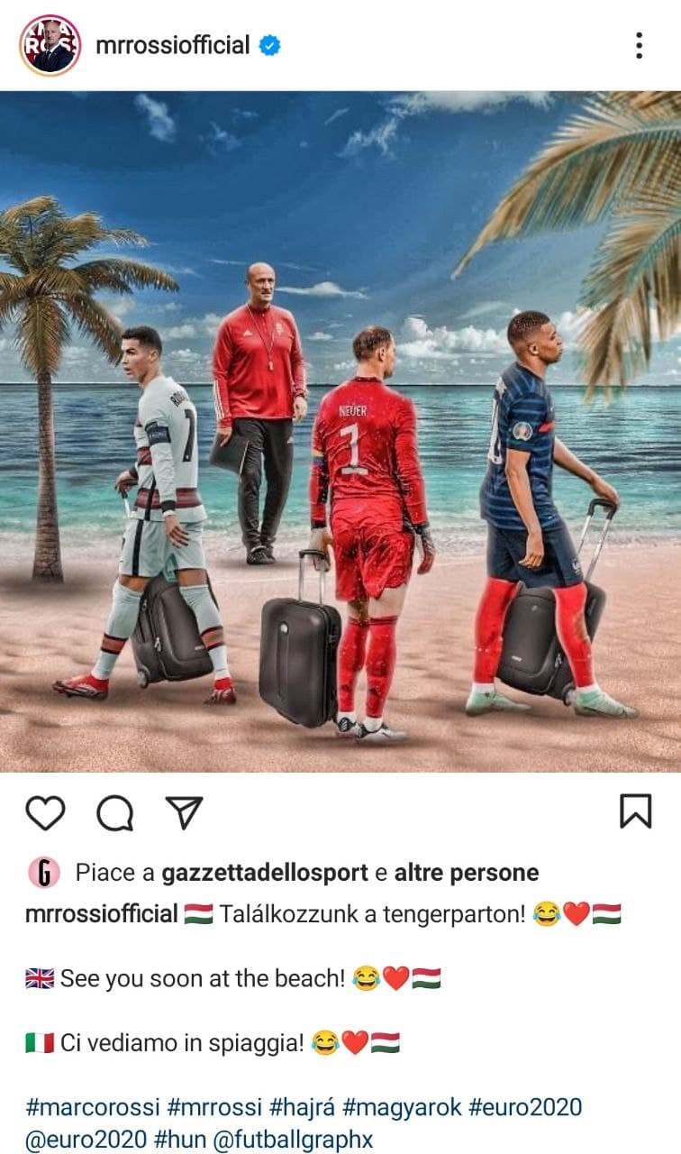 این همان موضوع مورد توجه مارکو روسی مربی مجارستان است که با کنایه به سه تیم پرستاره فوتبال اروپا، آنها را هم در پوستری در حال آغاز کردن تعطیلات نشان می دهد.