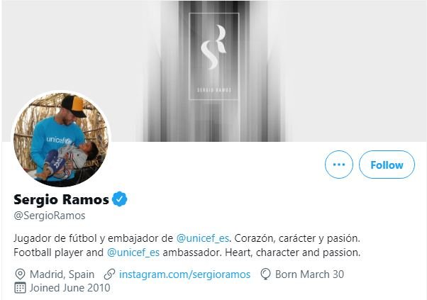 بعد از 30 ژوئن، با پایان ارتباط با باشگاه رئال مادرید، راموس دیگر بازیکن آزاد محسوب می شود. ستاره محبوب و سابق رئال مادرید دیشب و بلافاصله بعد از اتمام رسمی قرارداد خود، اسم این باشگاه را از اکانت های رسمی‌اش در فضای مجازی پاک کرد. حالا عباراتی چون "بازیکن فوتبال و سفیر یونیسف" در توضیحات جدید در بیوگرافی توییتر سرخیو راموس دیده می شود. همچنین راموس از کلماتی چون قلب، شخصیت و شور و اشتیاق نیز استفاده کرده، اما بر خلاف گذشته هیچ اثری از نام باشگاه رئال مادرید در پروفایل او در صفحات شبکه های اجتماعی دیده نمی شود.