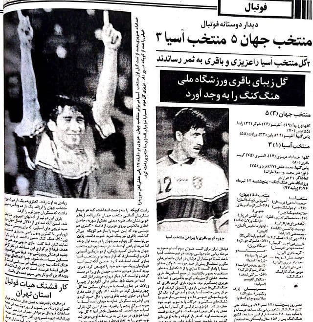 در فاصله بازی های جام ملتهای آسیا در سال 75و آغاز رقابت های مقدماتی جام جهانی 1998فرانسه در شهریور سال 1376تیم منتخب آسیا در روز 12تیر 24سال قبل با حضور کریم باقری ،خداداد عزیزی و علی دایی به مصاف تیم منتخب جهان در هنگ کنگ رفت . حضور لوتار ماتیوس اسطوره آلمانی ها در کنار دونگا برزیلی که هر دو به مقام قهرمانی جام جهانی با تیم های آلمان و برزیل رسیدند به همراه بزرگانی چون آندریاس کوپکه ،فرناندو هیرو،هاکان شوکر ،ژرژ وه آ،ژان پیر پاپن و ... در تیم منتخب جهان که از بهترین های آن روزهای فوتبال جهان بودند و درخشش بزرگان ایرانی در این مسابقه نشان از جایگاه بالای بازیکنان ایرانی در آن سالها دارد.