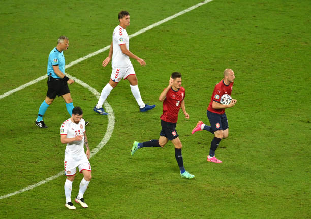 در دقیقه 22 جمهوری چک تا آستانه باز کردن دروازه دانمارک پیش رفت اما ضربه توماس هولش در مصافی تک به تک توسط کسپر اشمایکل مهار و به کرنر فرستاده شد.
