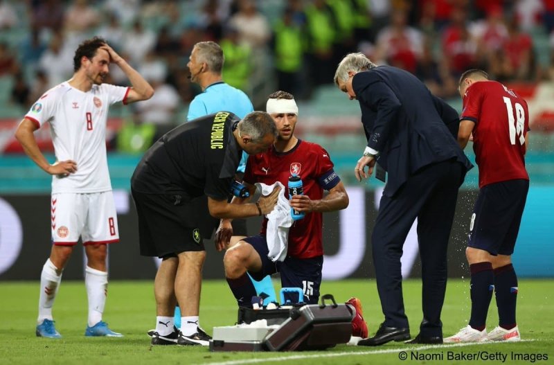 در این لحظات، بازیکنان تیم ملی جمهوری چک چندین بار دچار مصدومیت هایی شدید هم شدند؛ برای مثال می توان به مصدومیت نسبتا شدید توماس سوچک اشاره کرد که با وجود آسیب دیدگی از ناحیه سر، به بازی ادامه داد. اوندری چلوستکا هم در این دیدار مصدومیت شدیدی را متحمل شد به گونه ای که قادر به ادامه دادن بازی نبود و پس از خروج از میدان با کمک دو تن از هم تیمی هایش، جای خود را به برابک داد.