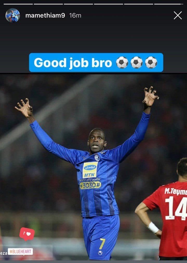 مامه تیام بعد از هت تریک شیخ در بازی فصل 99-98 با انتشار یک استوری به تمجید از این بازیکن پرداخته بود.