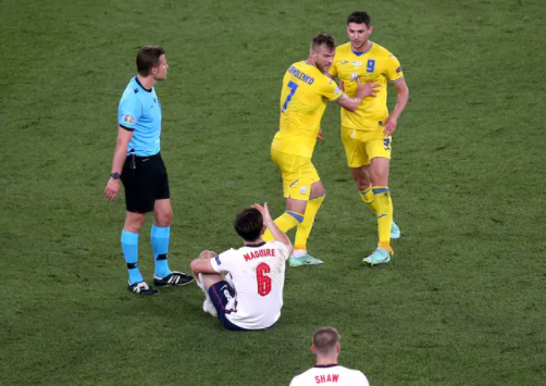 یارمچوک رو مدافع گران قیمت تیم ملی انگلیس مرتکب خطا شده و قصد داشت در حرکتی جوانمردانه برای بلند شدن از روی زمین با هری مگوایر کمک کند، اما یارمولنکو با فریاد به سمت این بازیکن آمده و او را به سمت عقب هدایت کرد. این صحنه در دقایق پایانی نیمه اول و زمانی رخ داد که انگلیس هنوز تنها یک بار موفق به باز کردن دروازه اوکراین شده و حذف این تیم هنوز قطعی نشده بود.